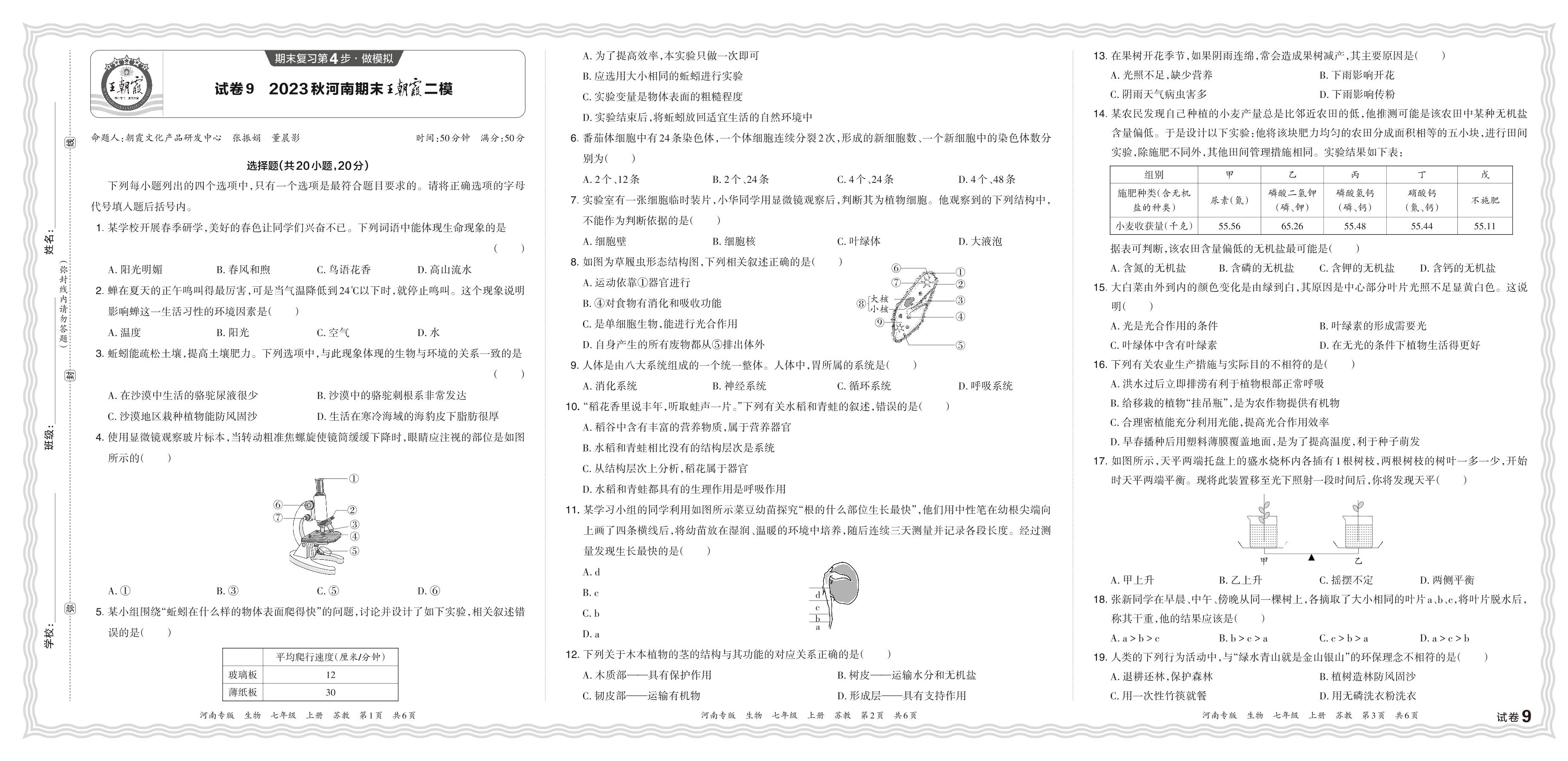 2023秋上册七年级生物苏教版 河南期末王朝霞二模