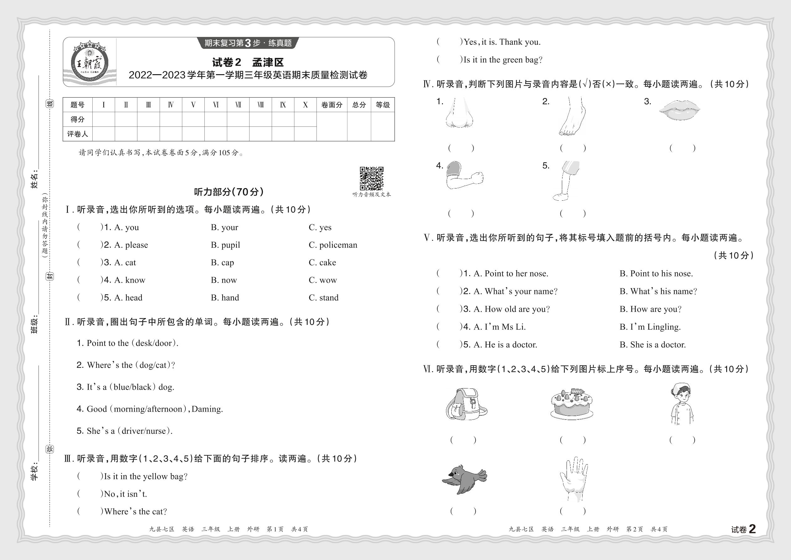 河南省洛阳市孟津区2022—2023学年第一学期三年级英语期末质量检测试卷(外研版)【2】