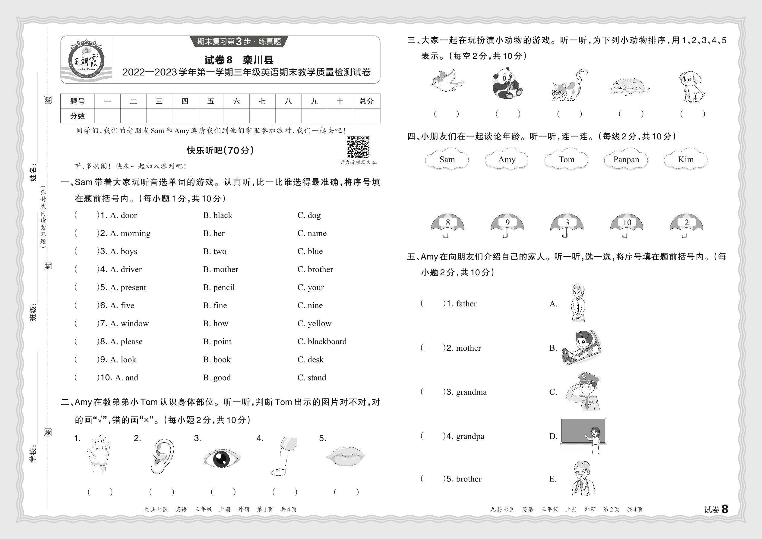 河南省洛阳市栾川县2022—2023学年第一学期三年级英语期末教学质量检测试卷(外研版)【8】