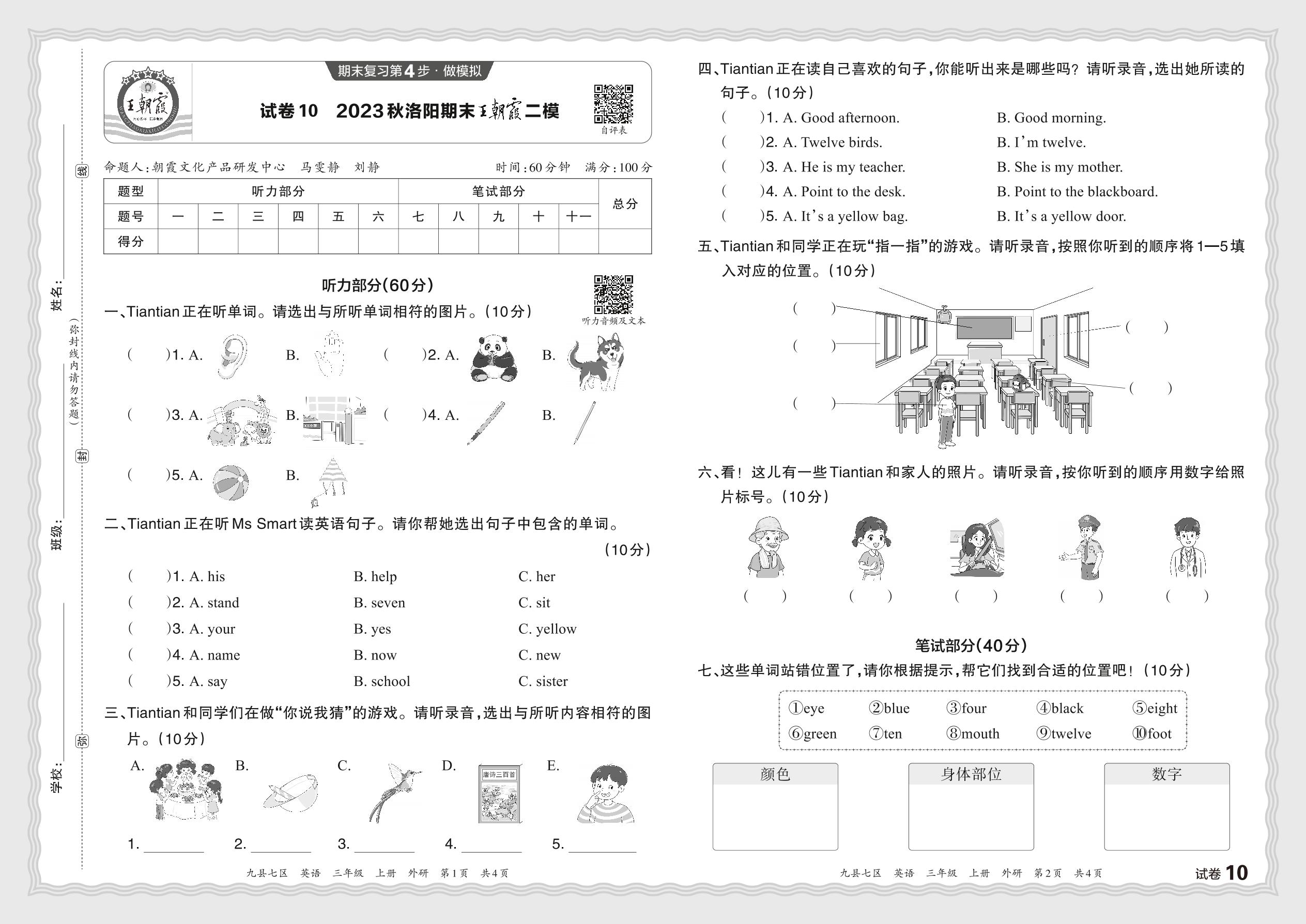 2023秋上册三年级英语外研版 河南洛阳期末王朝霞二模【10】