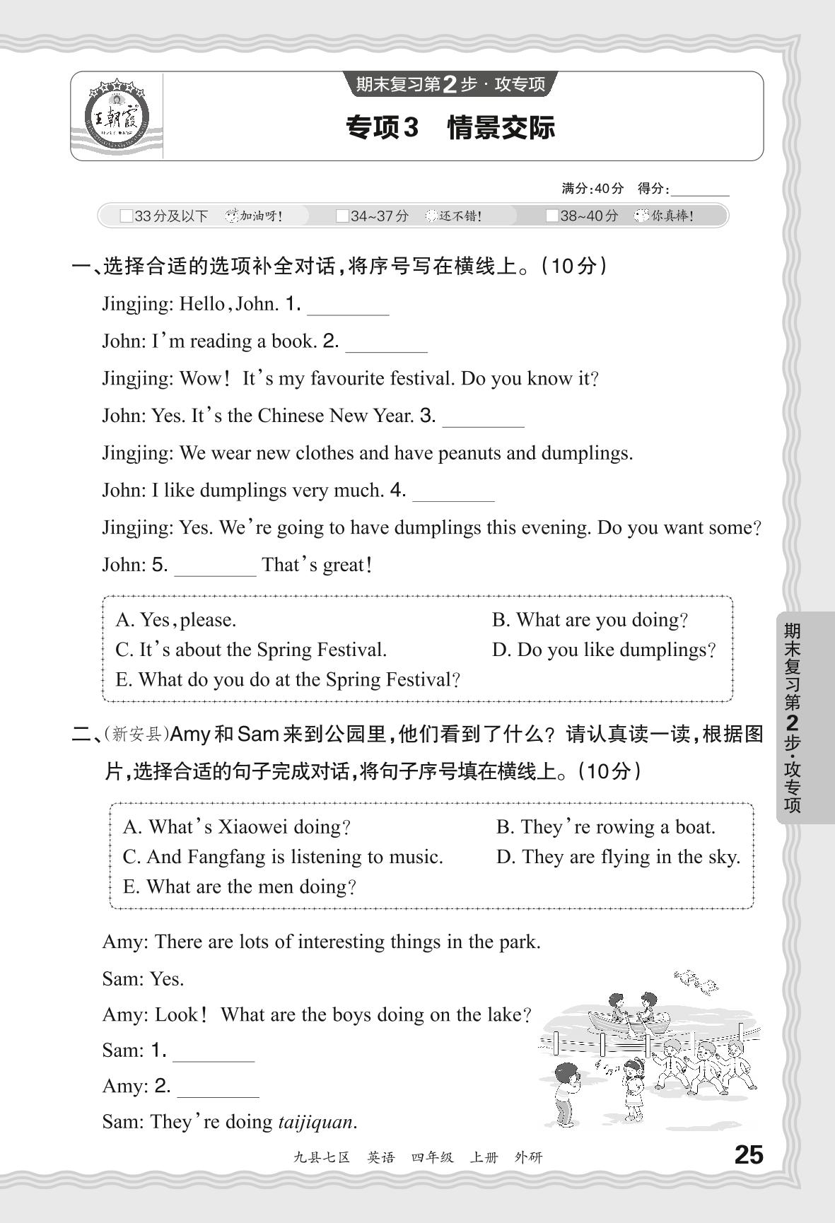 2023秋上册四年级英语外研版 期末专项卷·情景交际_R231127162407570【3】