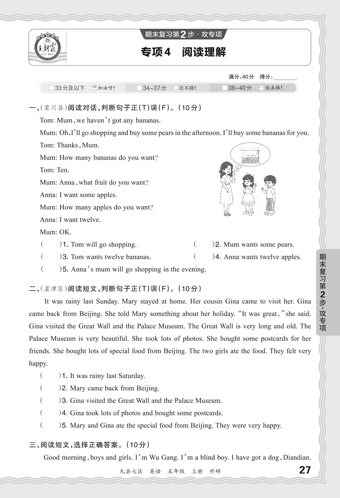 2023秋上册五年级英语外研版 期末专项卷·阅读理解_R231127163731908【4】