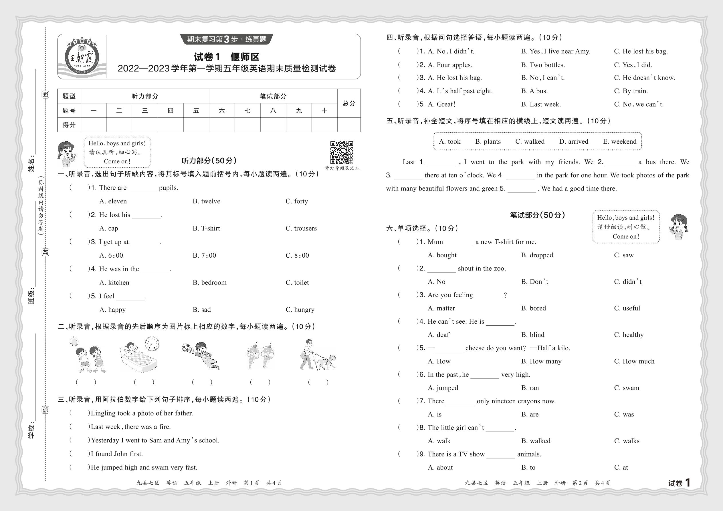 河南省洛阳市偃师区2022—2023学年第一学期五年级英语期末质量检测试卷(外研版)【1】