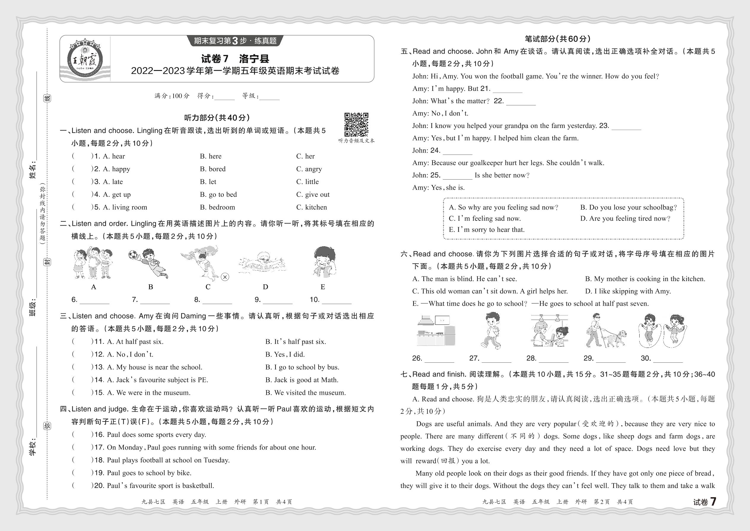 河南省洛阳市洛宁县2022—2023学年第一学期五年级英语期末考试试卷(外研版)【7】