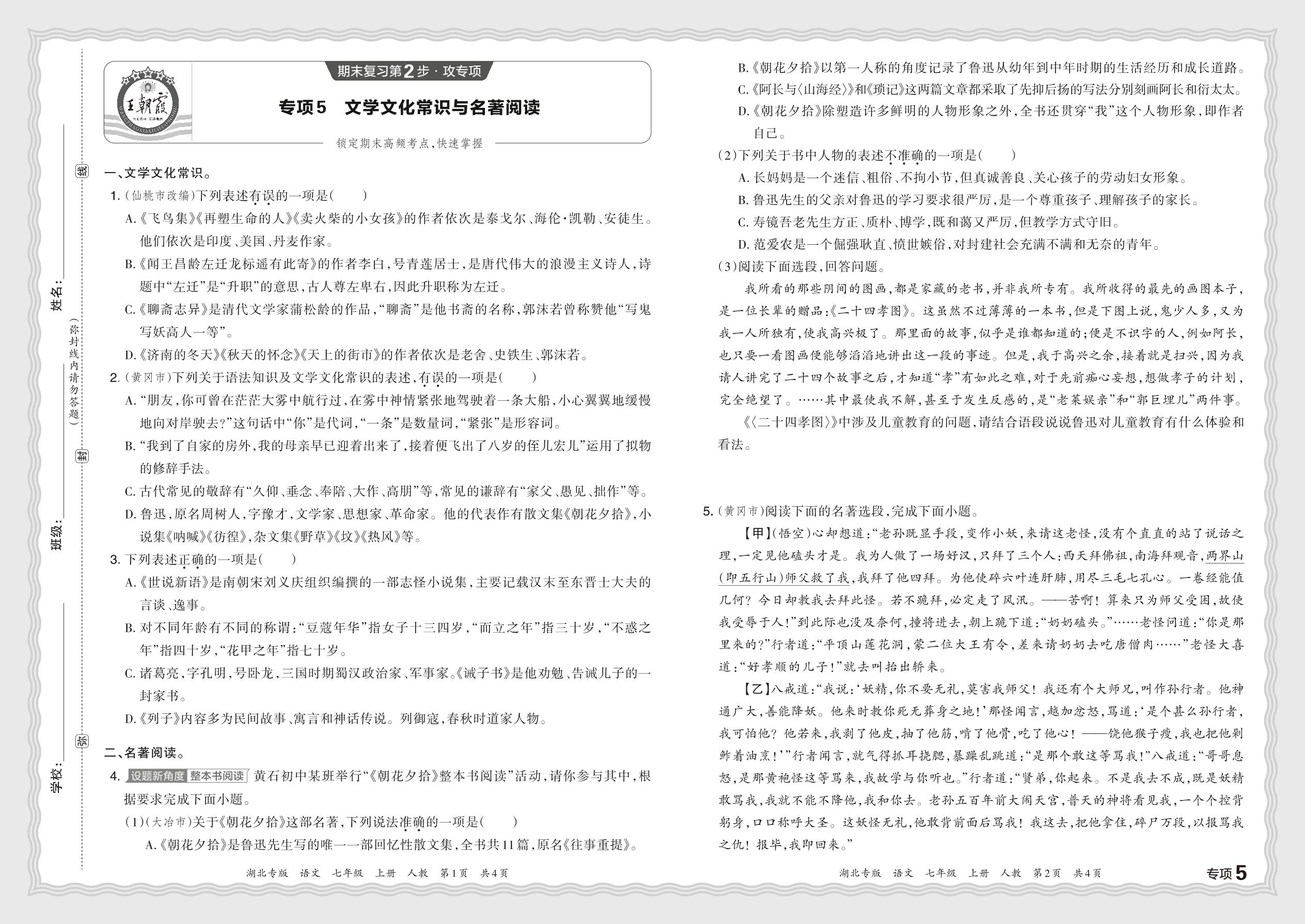 2023秋上册七年级语文人教版 期末专项卷·文学文化常识与名著阅读【5】
