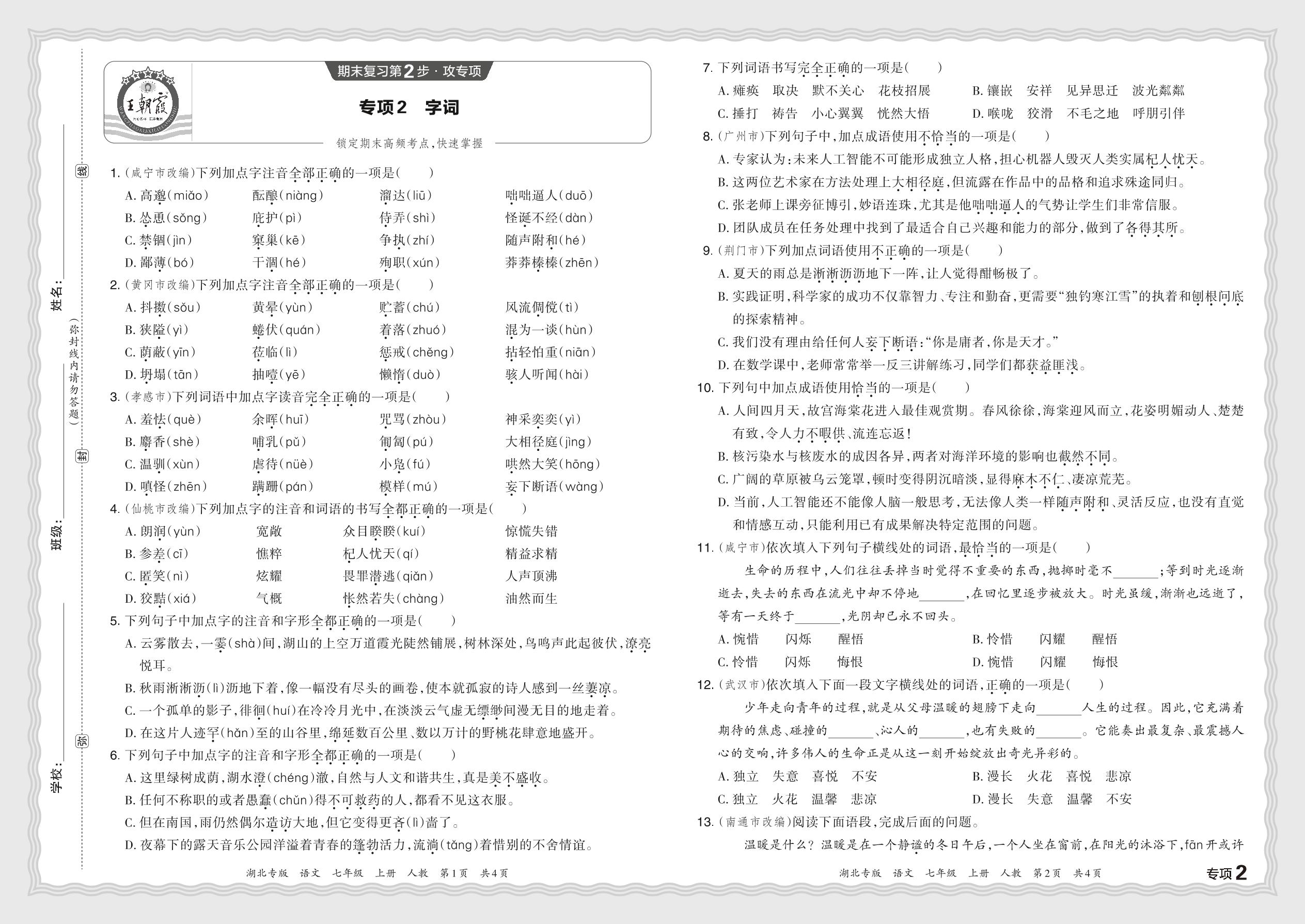 2023秋上册七年级语文人教版 期末专项卷·字词【2】