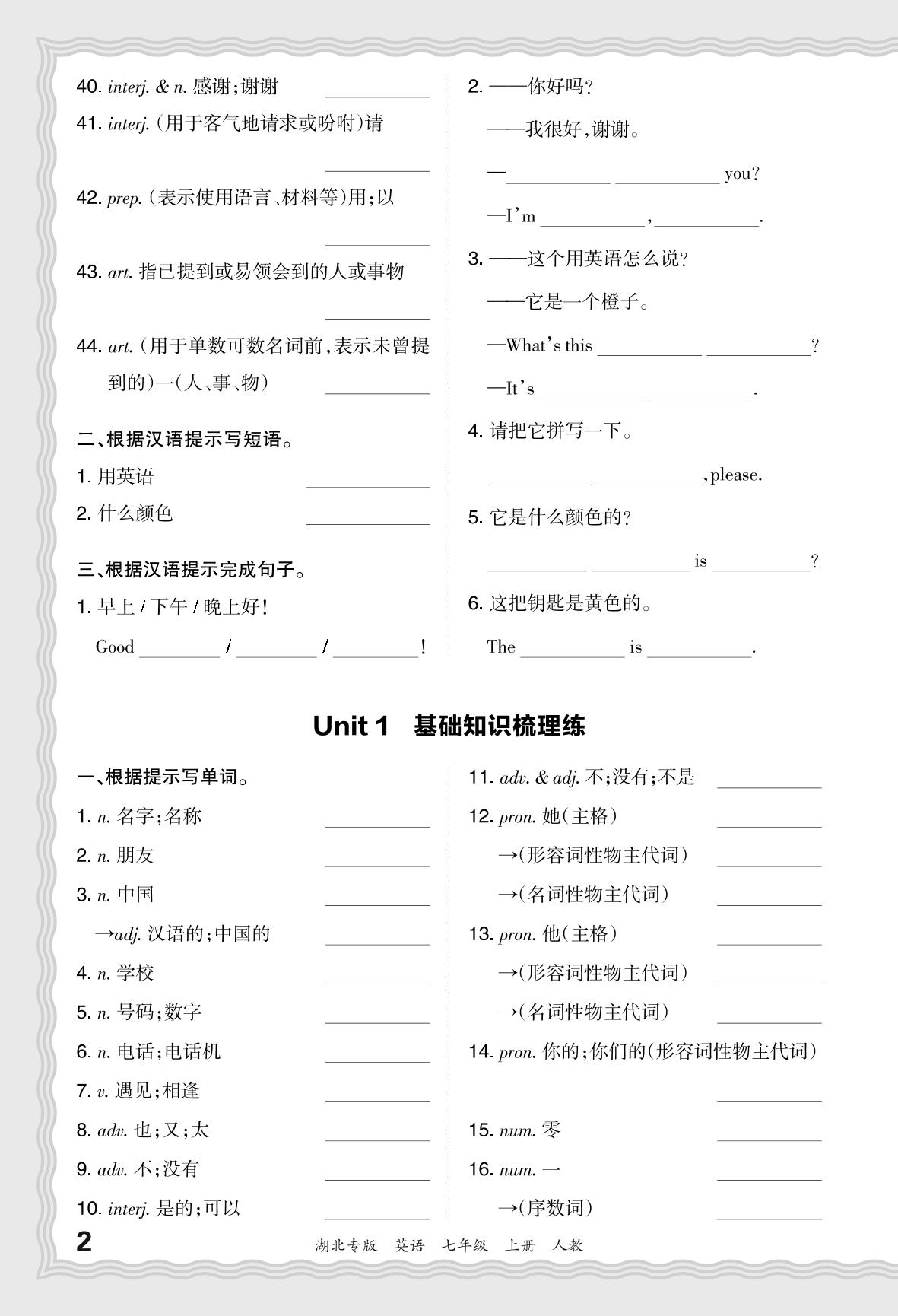 2023秋上册七年级英语人教版 期末过课本·Unit 1 基础知识梳理练_R231127165433179