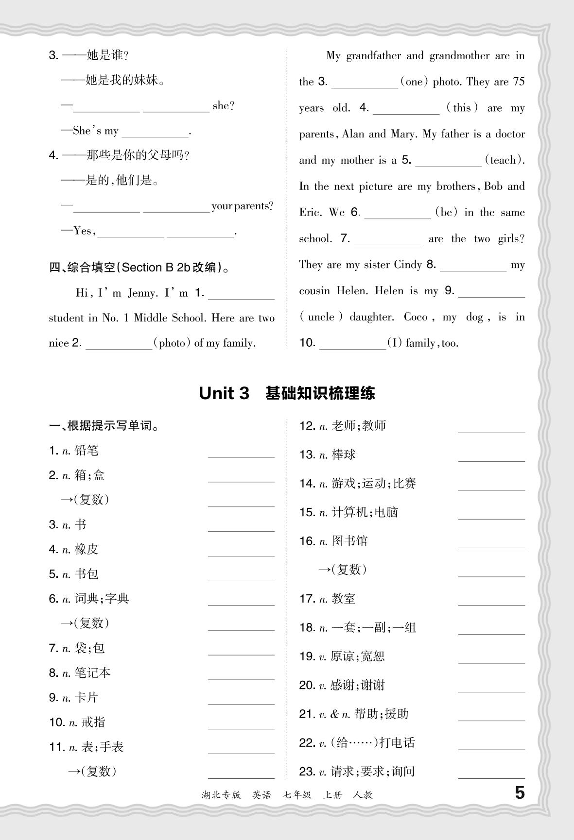 2023秋上册七年级英语人教版 期末过课本·Unit 3 基础知识梳理练_R231127165434036