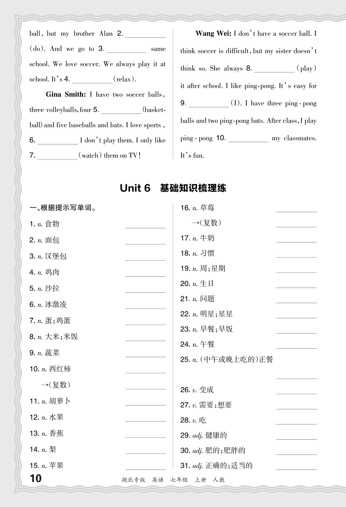 2023秋上册七年级英语人教版 期末过课本·Unit 6 基础知识梳理练_R231127165435544