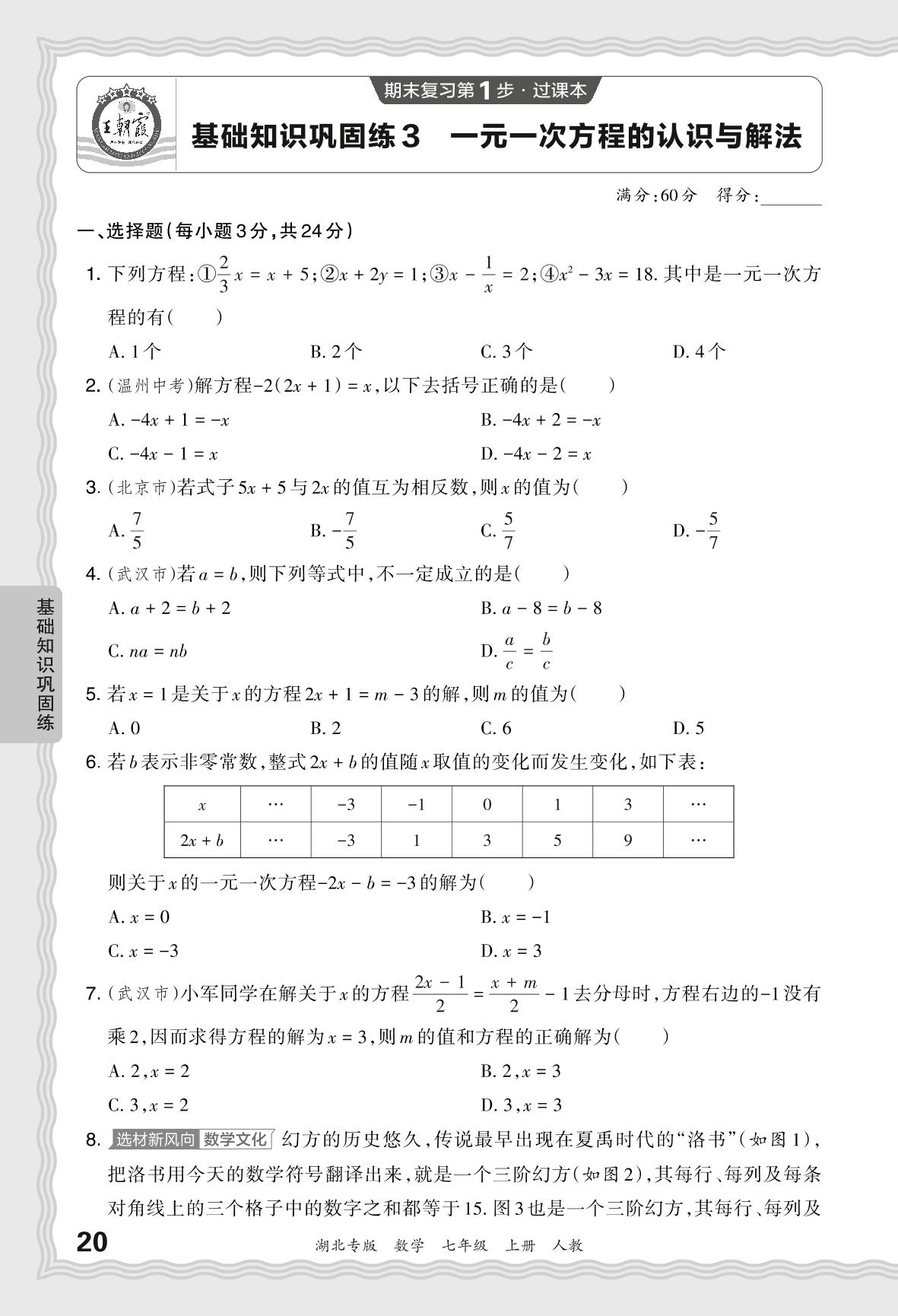 2023秋上册七年级数学人教版 期末过课本·基础知识巩固练 一元一次方程的认识与解法_R231127170159300【3】