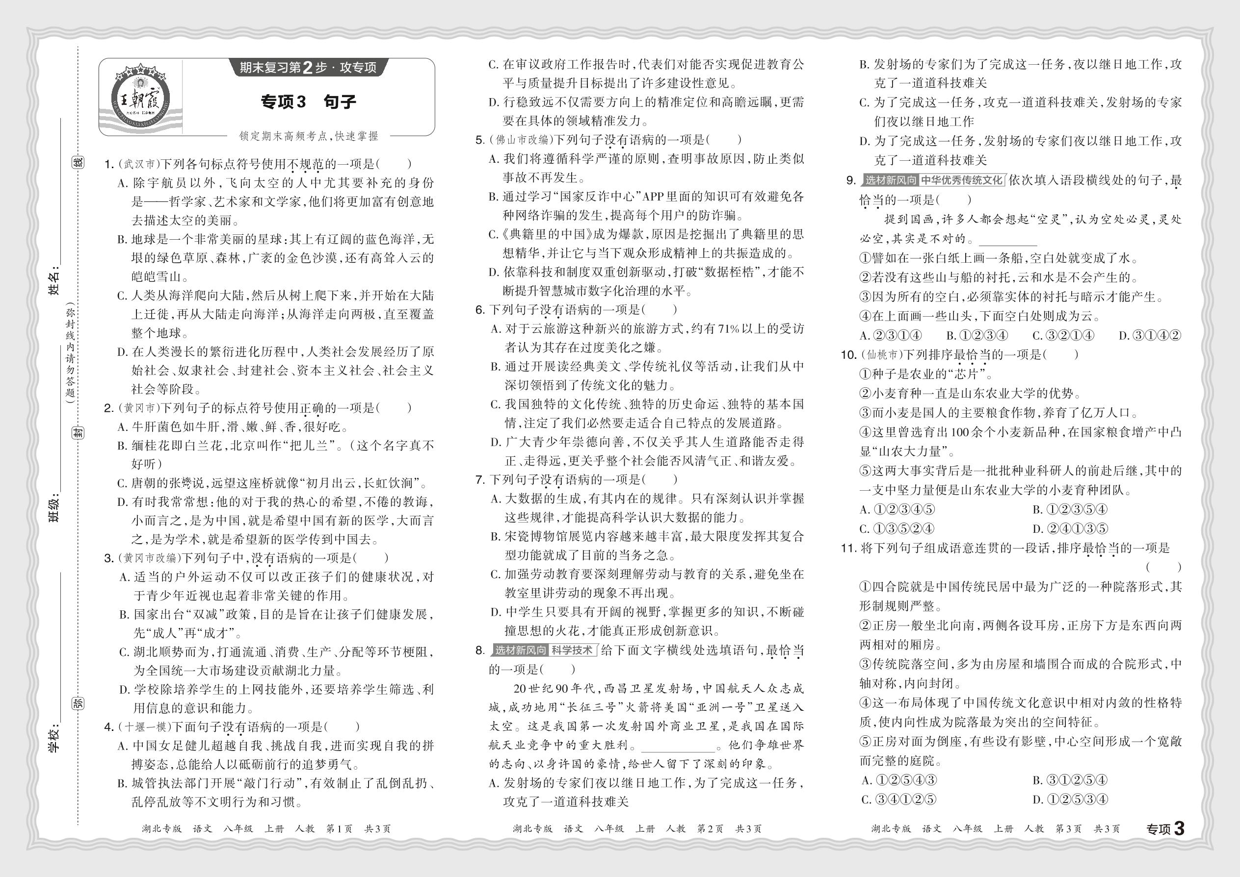 2023秋上册八年级语文人教版 期末专项卷·句子【3】