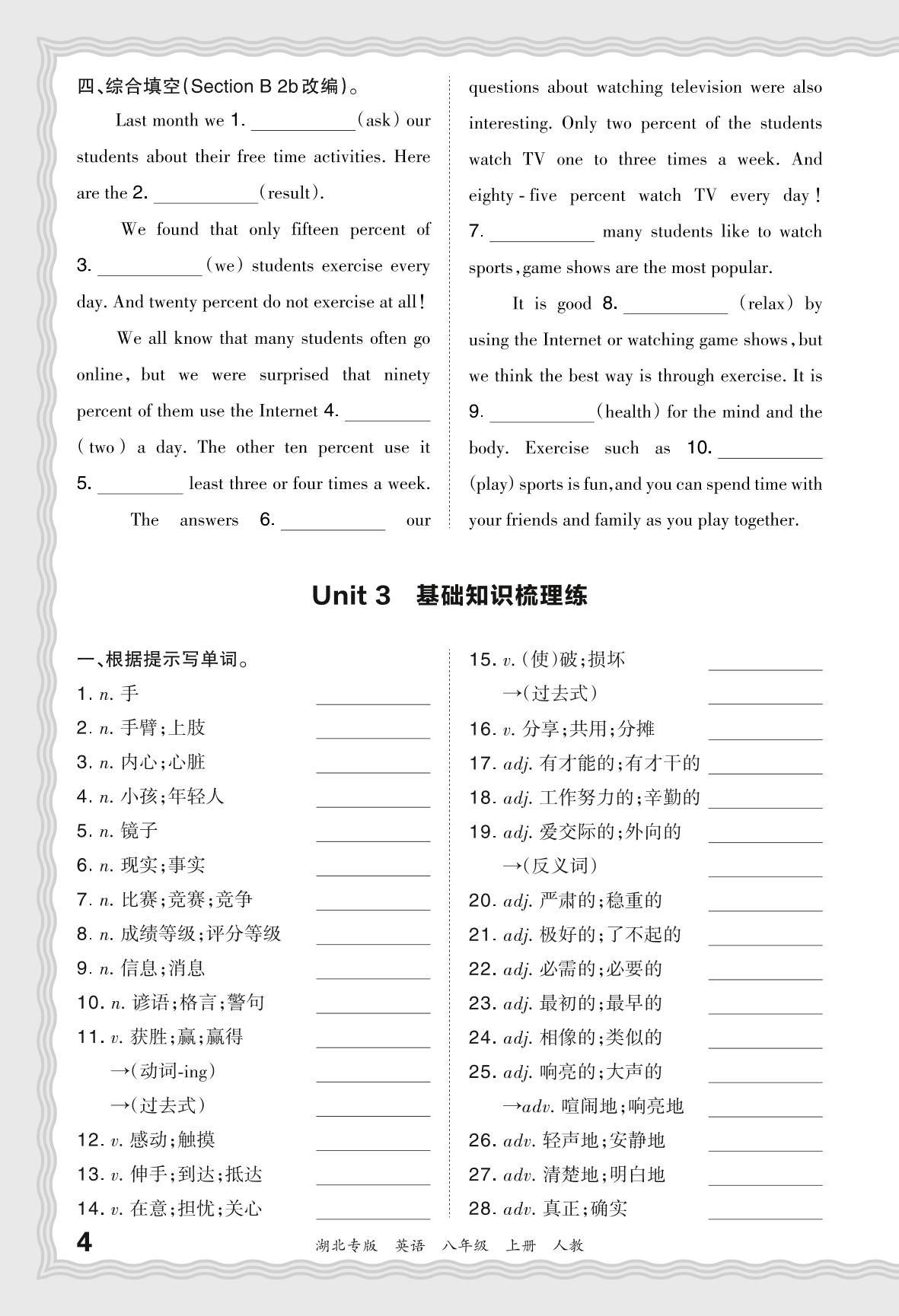 2023秋上册八年级英语人教版 期末过课本·Unit 3 基础知识梳理练_R231127171622144