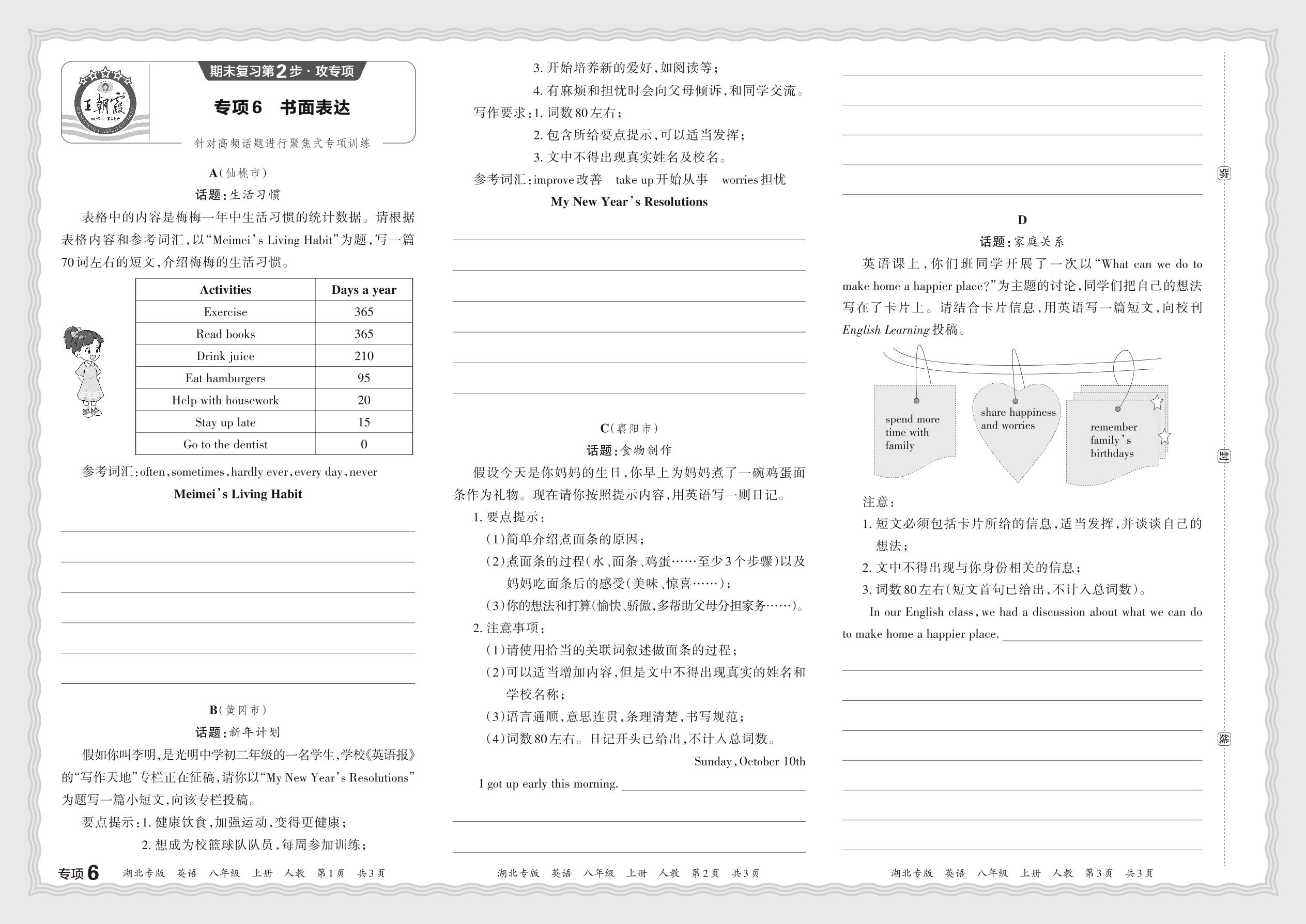 2023秋上册八年级英语人教版 期末专项卷·书面表达_R231127171625837【6】