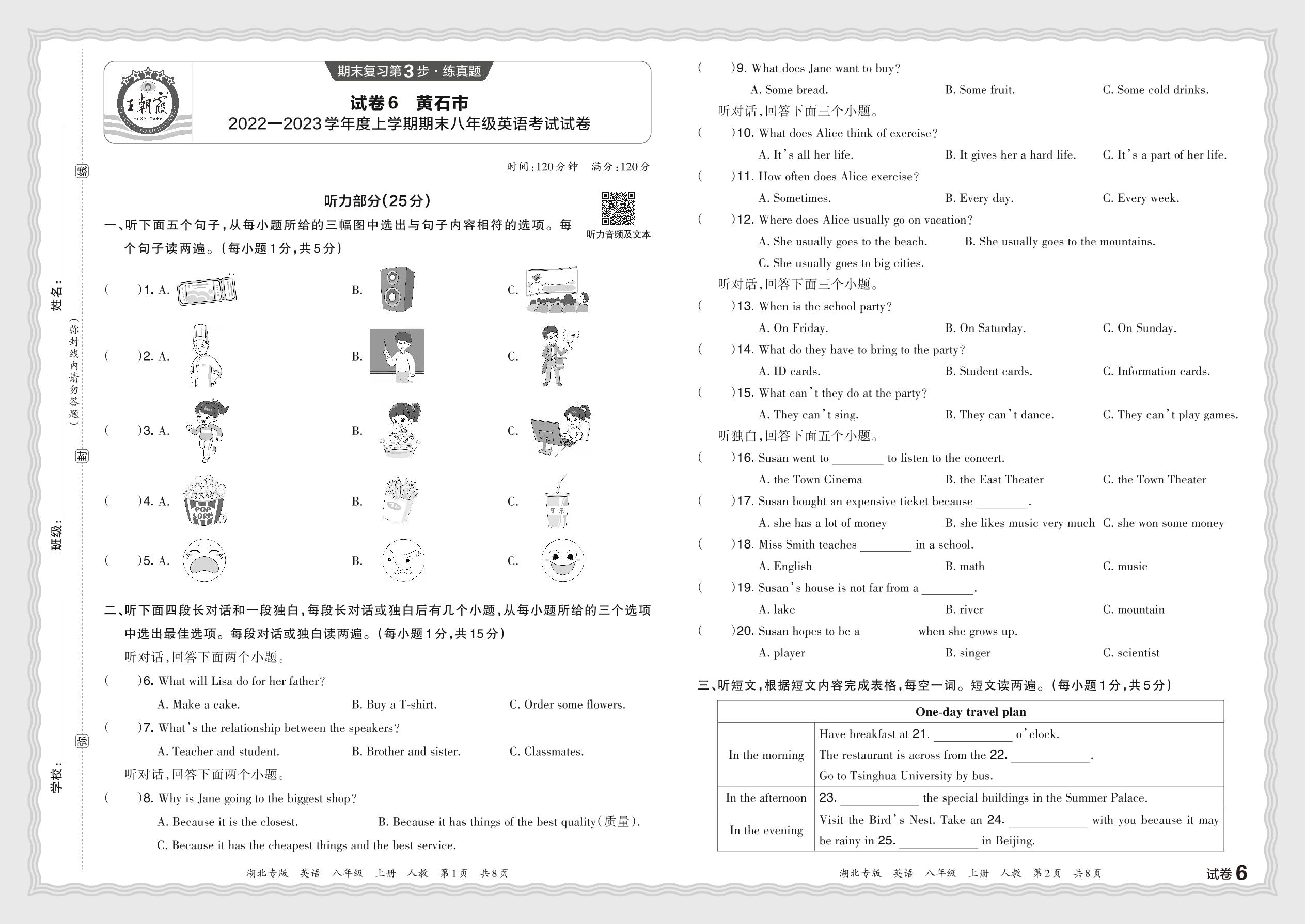 八年级英语人教版上册期末卷