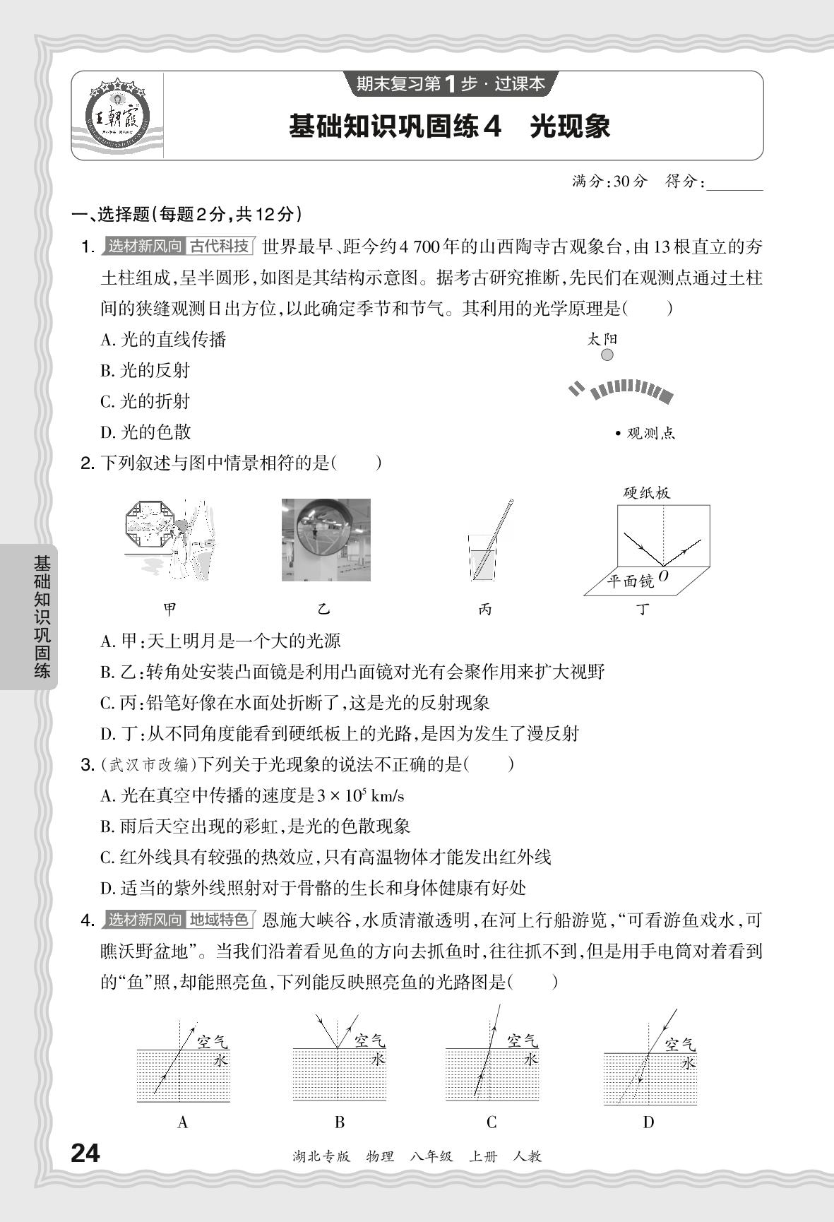 2023秋上册八年级物理人教版 期末过课本·基础知识巩固练 光现象_R231127172818632【4】