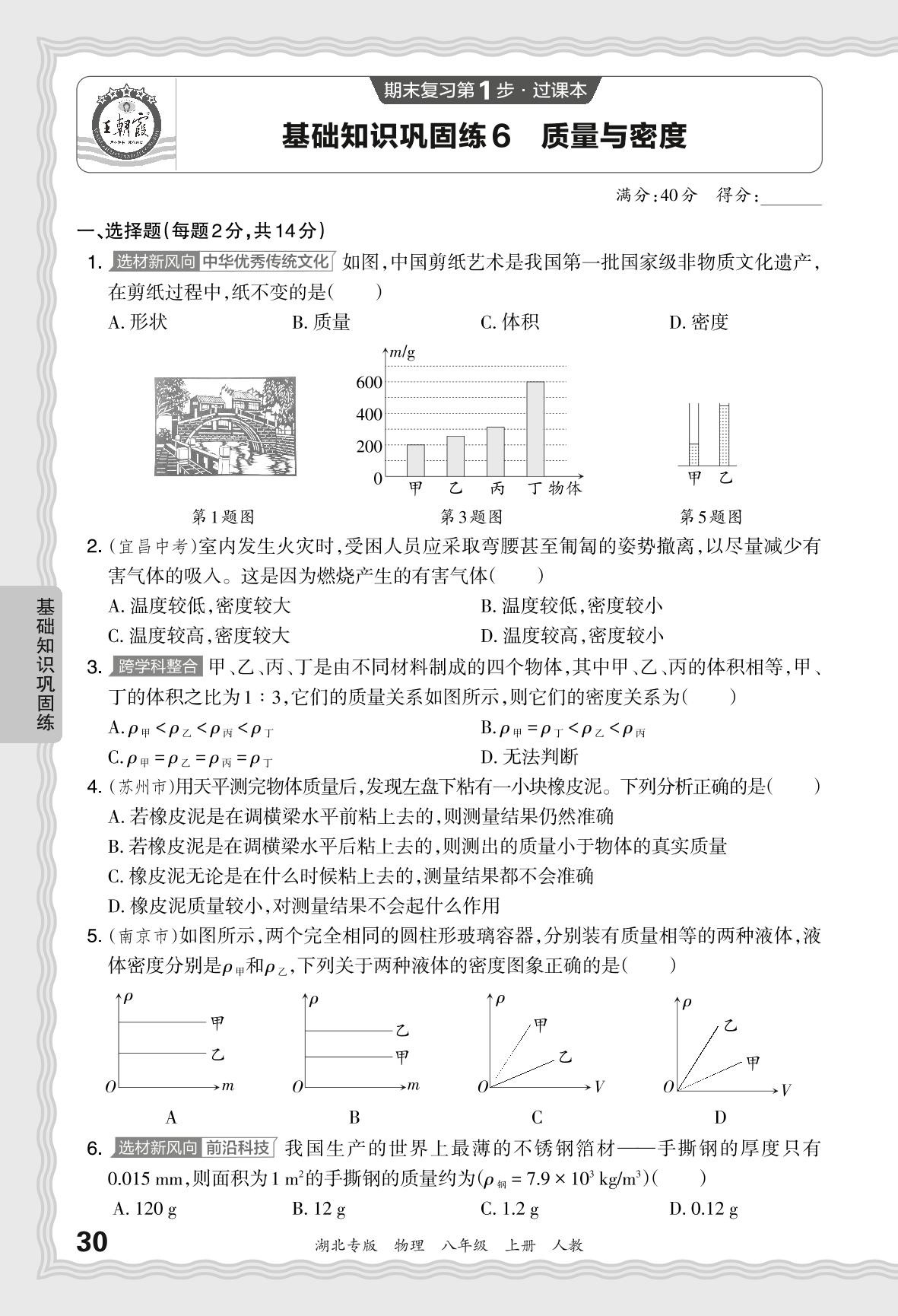 2023秋上册八年级物理人教版 期末过课本·基础知识巩固练 质量与密度_R231127172819316【6】