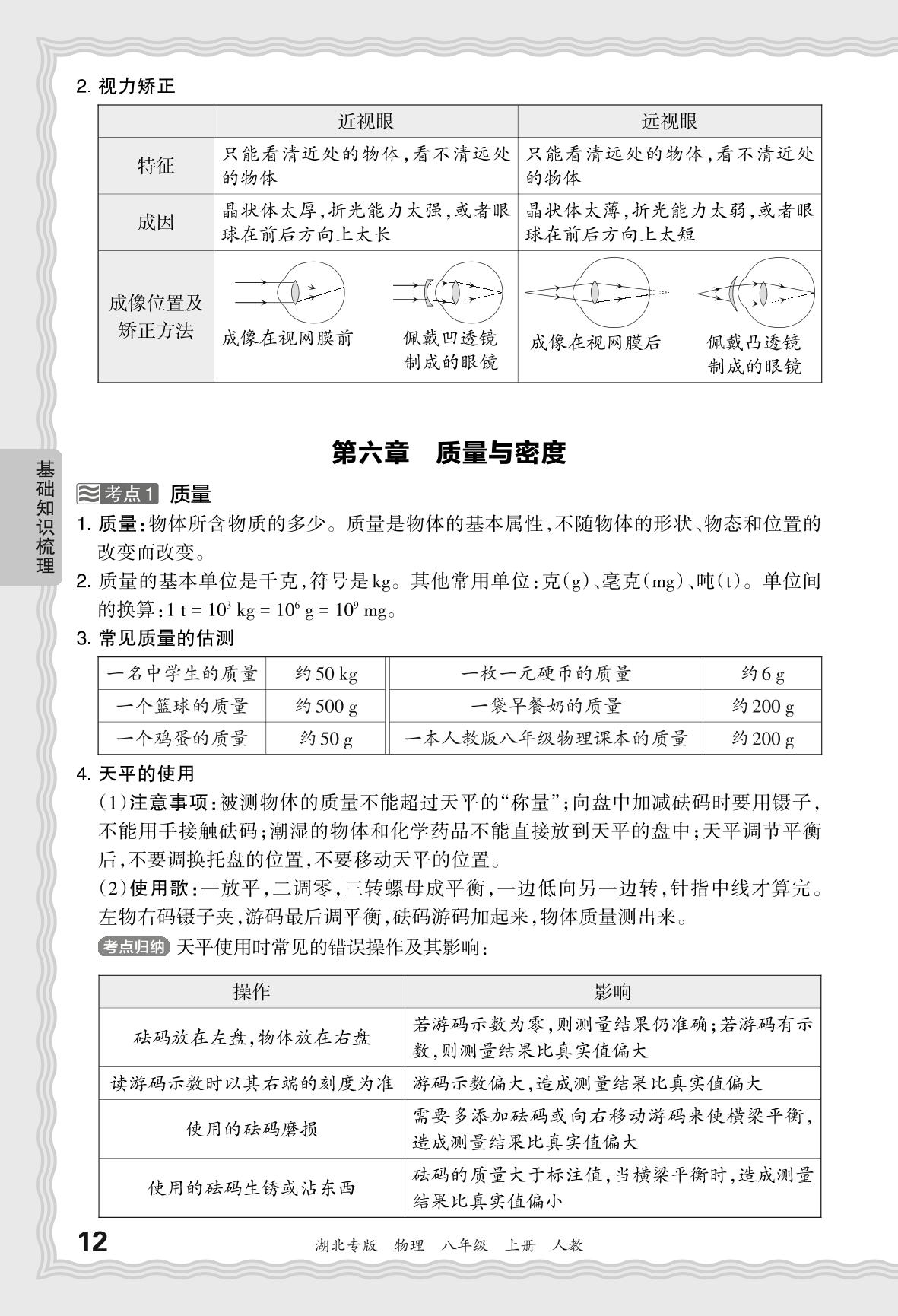 2023秋上册八年级物理人教版 期末过课本·基础知识梳理 第六章 质量与密度_R231127172820516