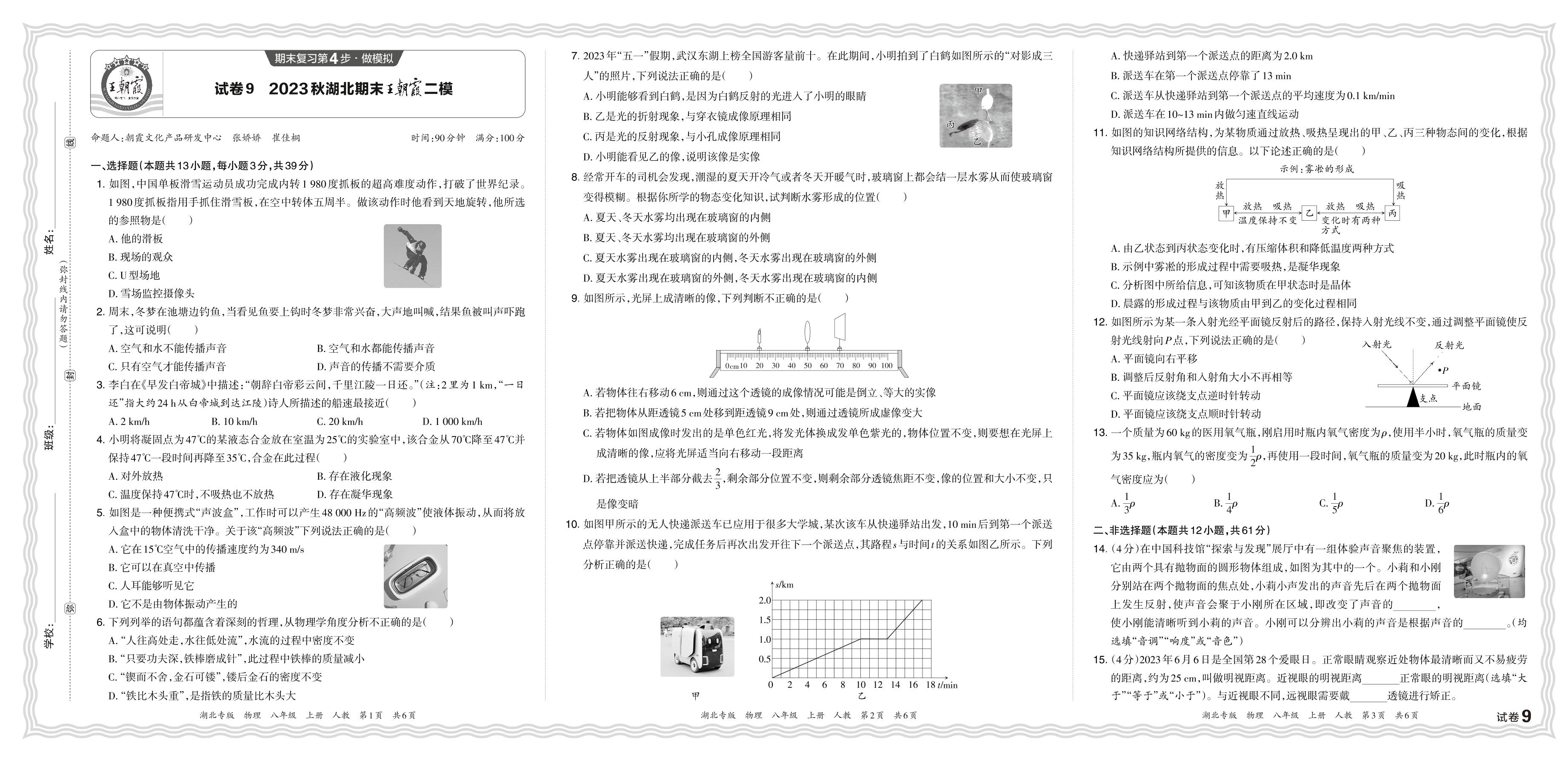 2023秋上册八年级物理人教版 湖北期末王朝霞二模