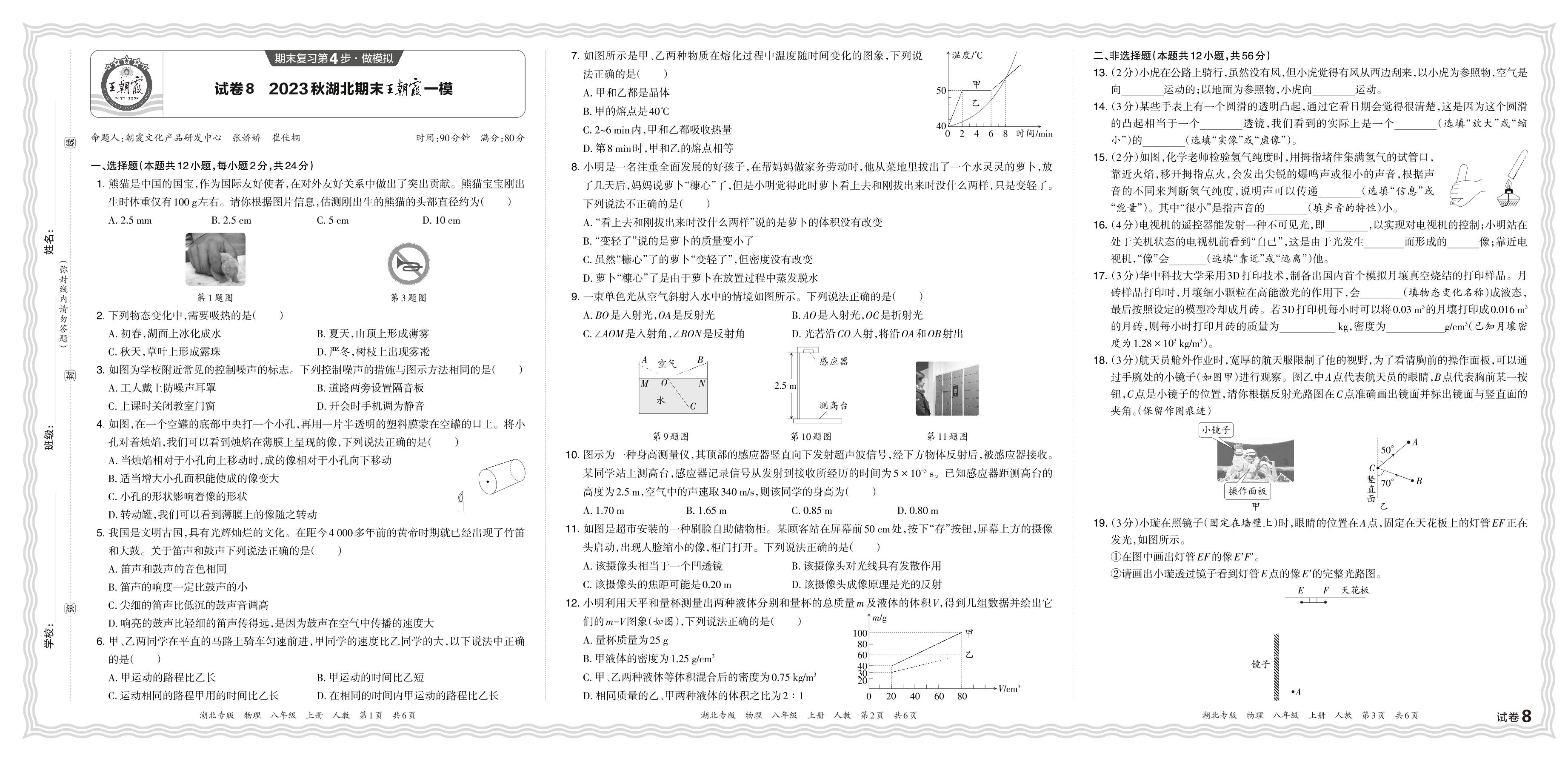 2023秋上册八年级物理人教版 湖北期末王朝霞一模