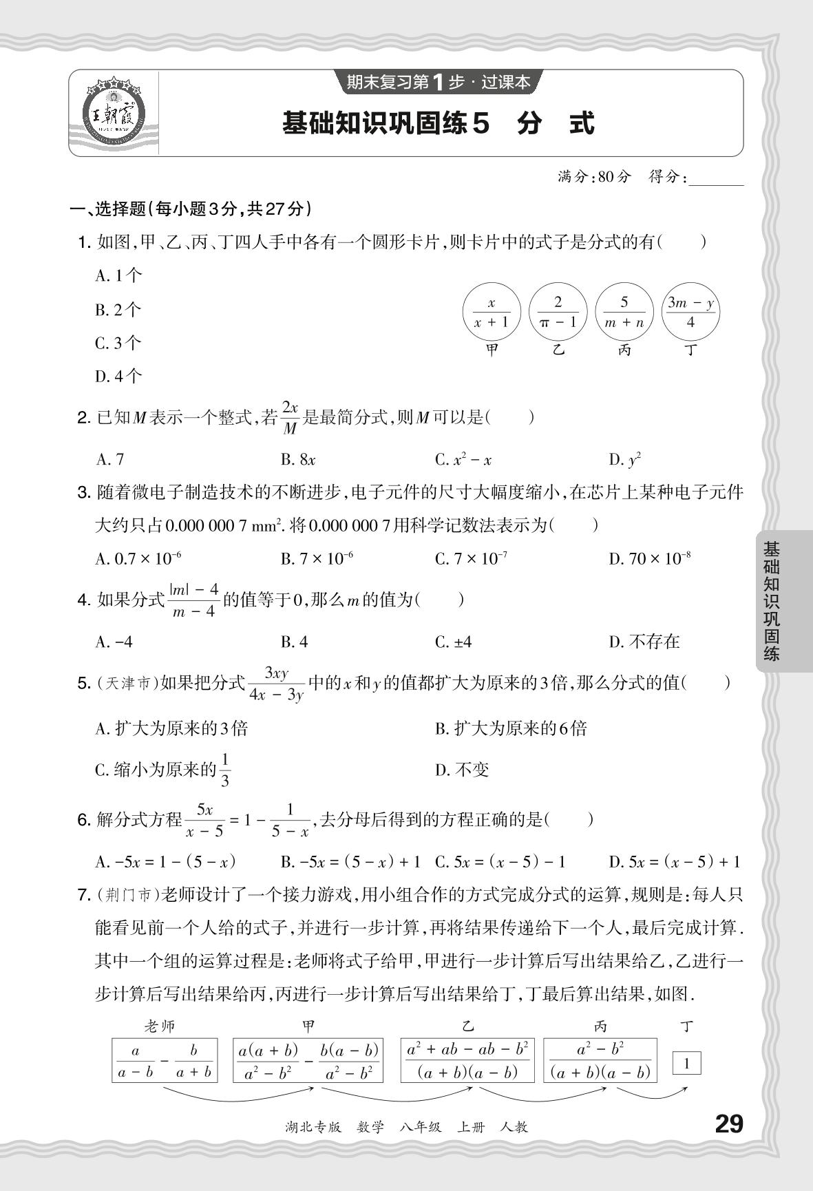 2023秋上册八年级数学人教版 期末过课本·基础知识巩固练 分式_R231127173500006【5】