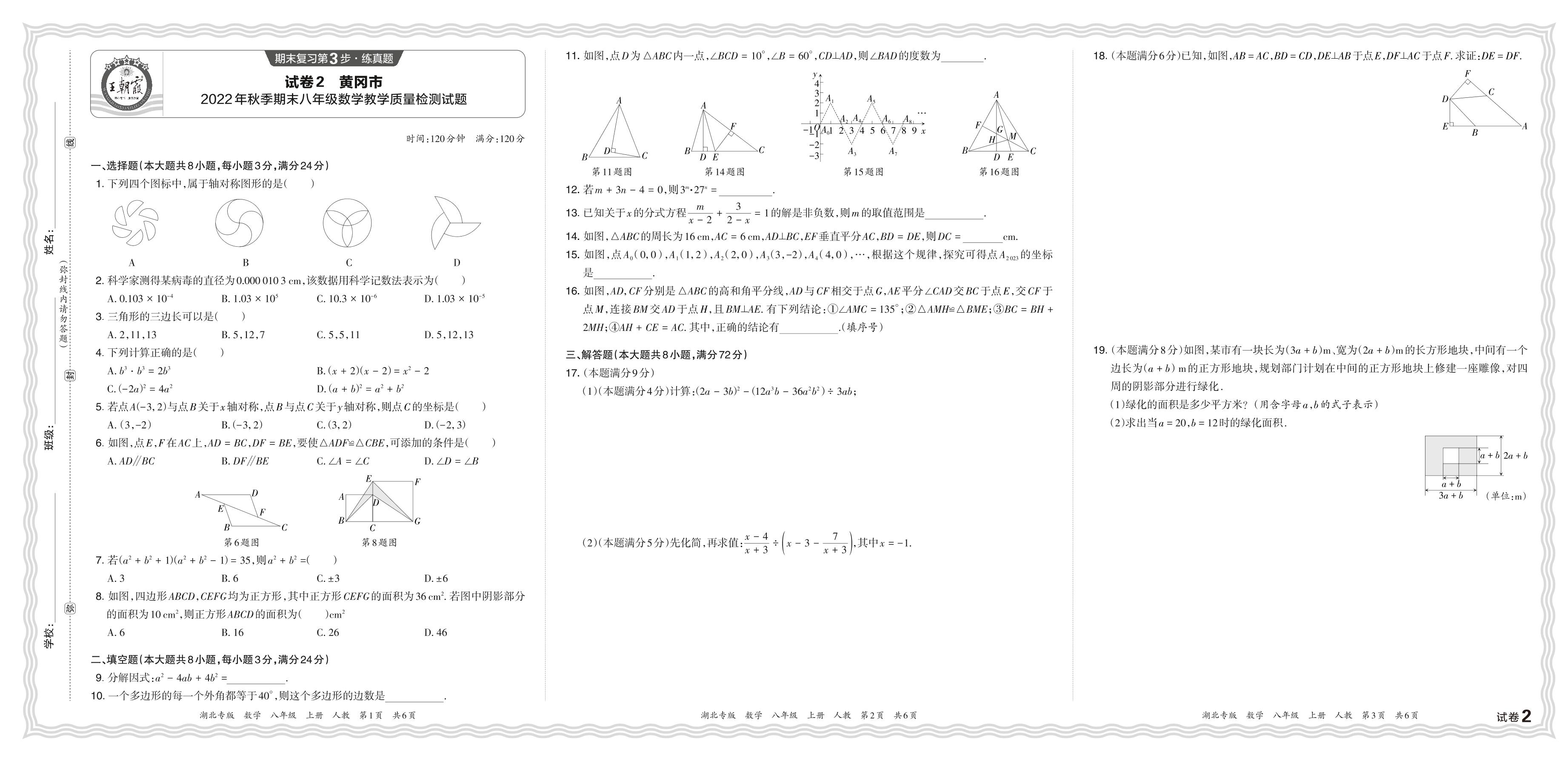 湖北省黄冈市2022年秋季期末八年级数学教学质量检测试题(人教版)【2】
