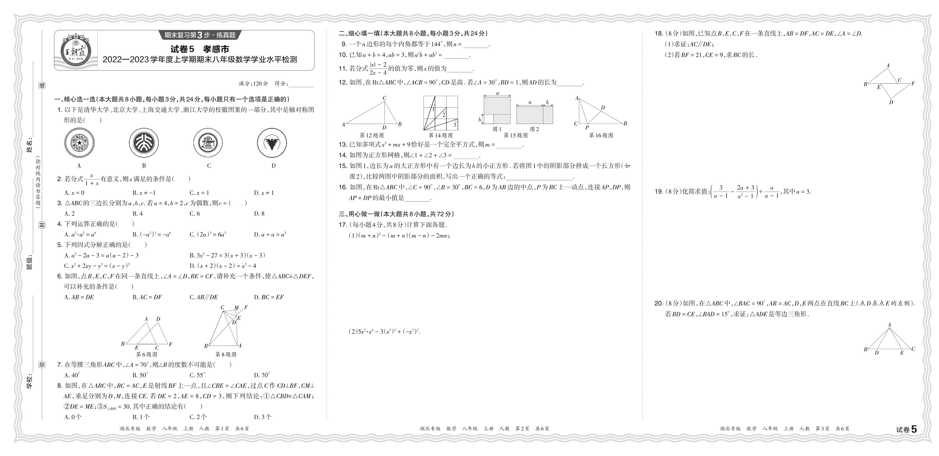 八年级数学人教版上册期末卷