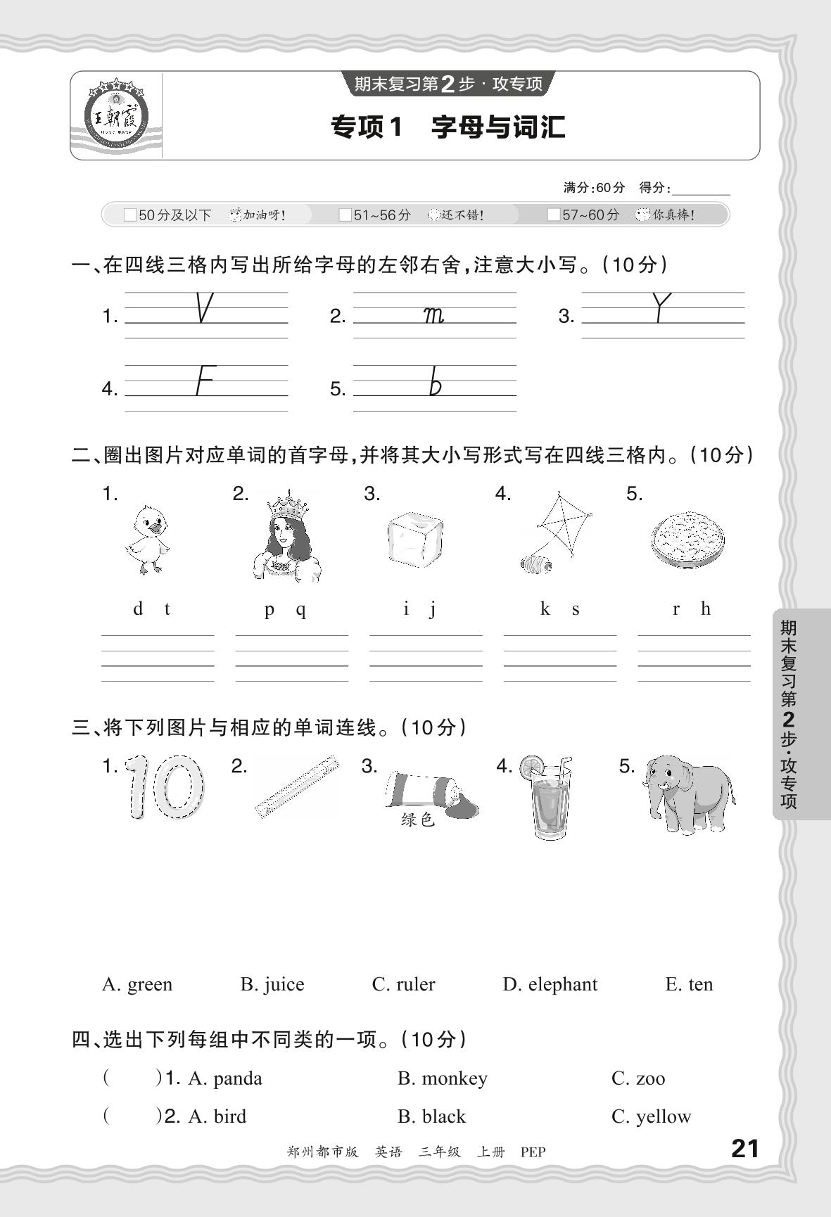 2023秋上册三年级英语人教PEP版 期末专项卷·字母与词汇_R231128090526713【1】