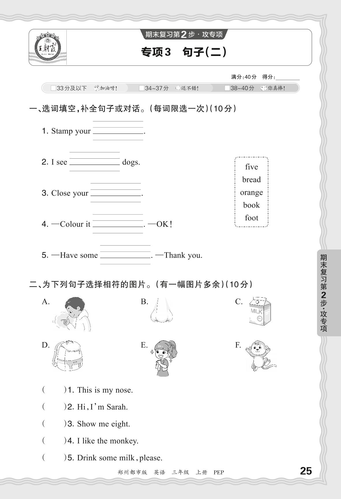 2023秋上册三年级英语人教PEP版 期末专项卷·句子(二)_R231128090527223【3】