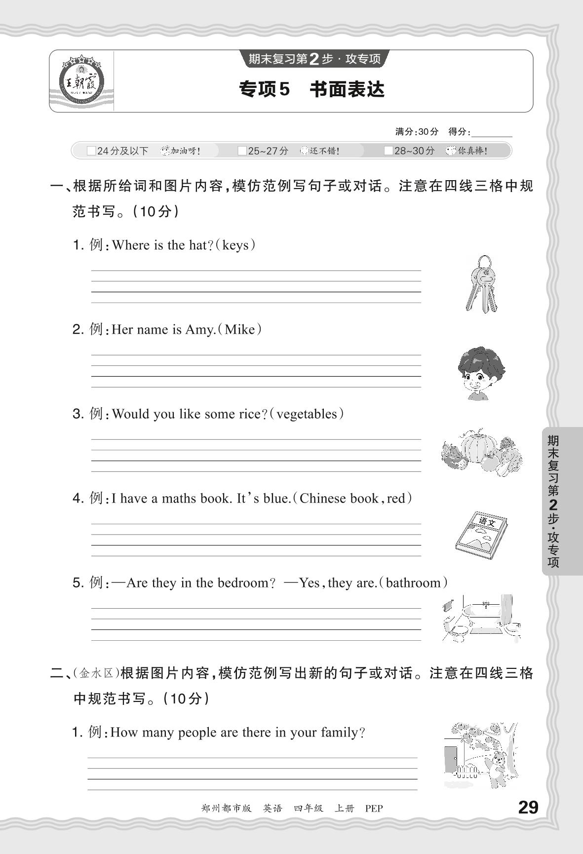 2023秋上册四年级英语人教PEP版 期末专项卷·书面表达【5】