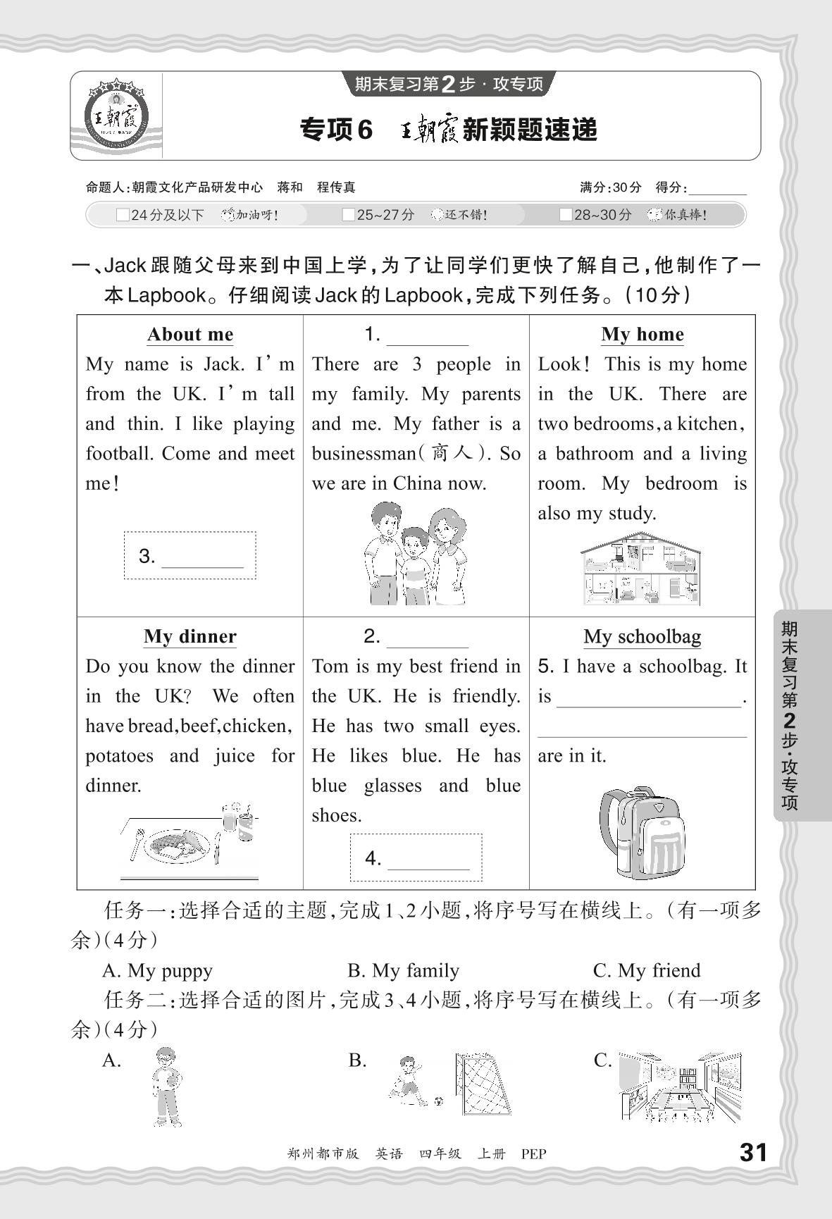 2023秋上册四年级英语人教PEP版 期末专项卷·王朝霞新颖题速递【6】