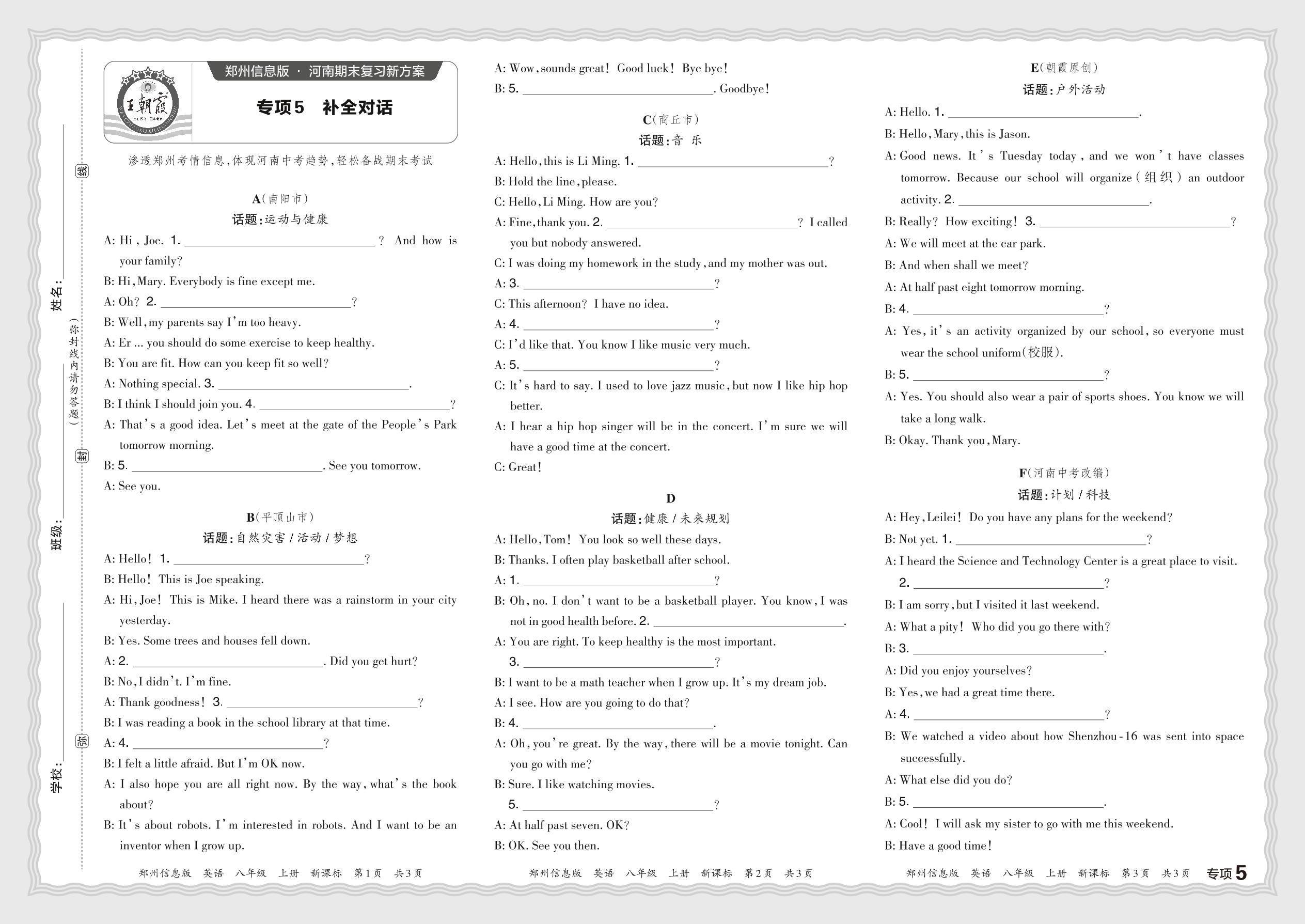 2023秋上册八年级英语新课标版 期末专项卷·补全对话_R231128093127183【5】