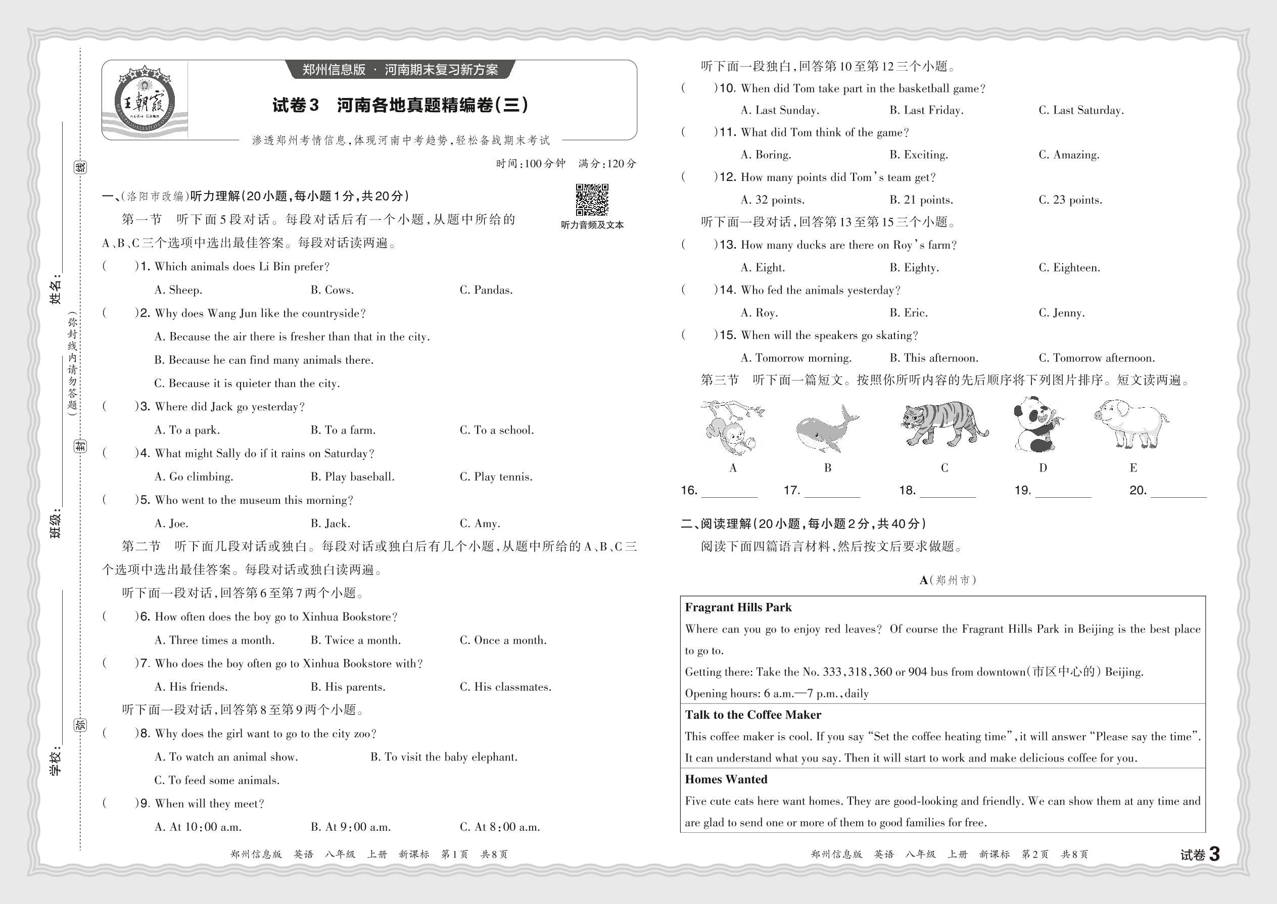 2023年秋河南各地真题精编卷(三)八年级上册期末英语(新课标版)【3】