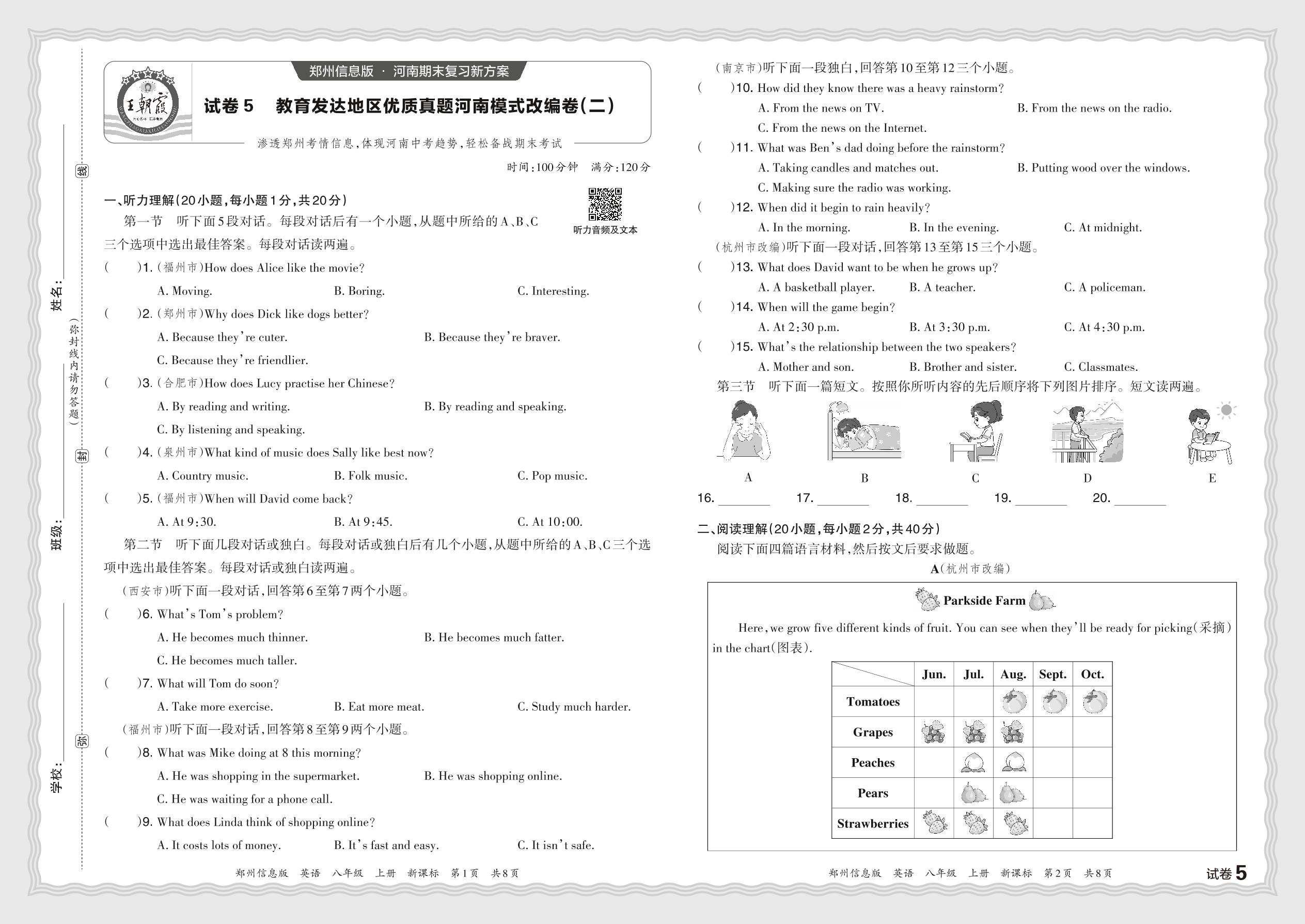 2023年秋教育发达地区优质真题河南模式改编卷(二)八年级上册期末英语(新课标版)【5】
