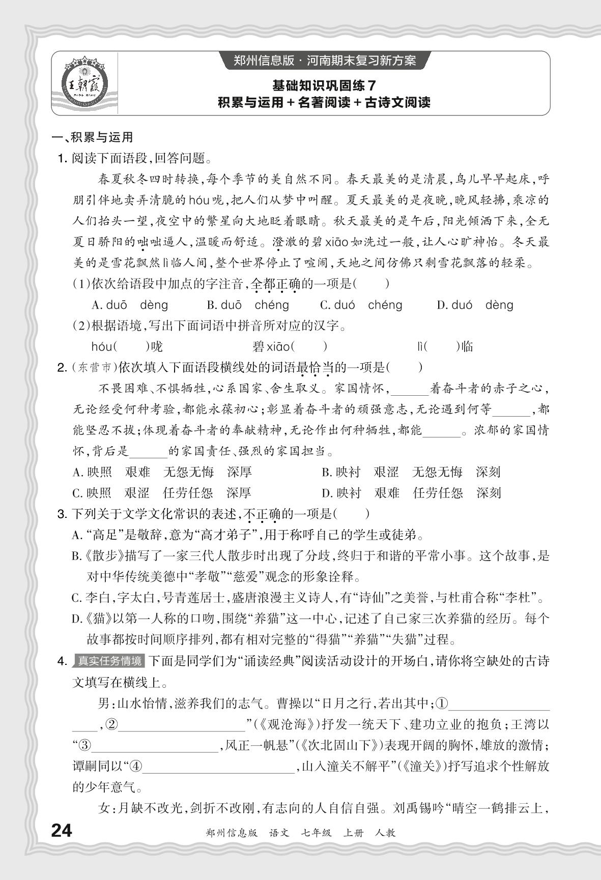 2023秋上册七年级语文人教版 期末过课本·基础知识巩固练 积累与运用+名著阅读+古诗文阅读【7】