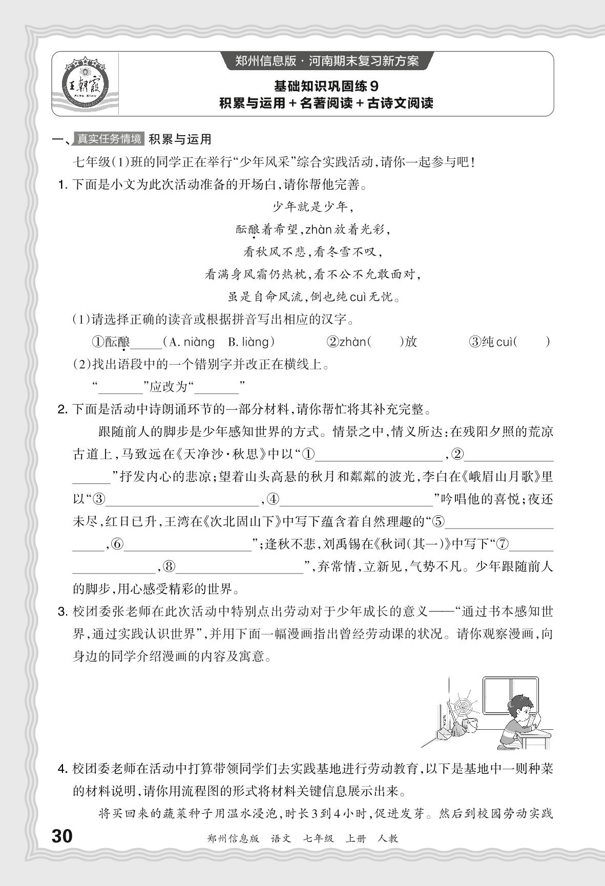 2023秋上册七年级语文人教版 期末过课本·基础知识巩固练 积累与运用+名著阅读+古诗文阅读【9】