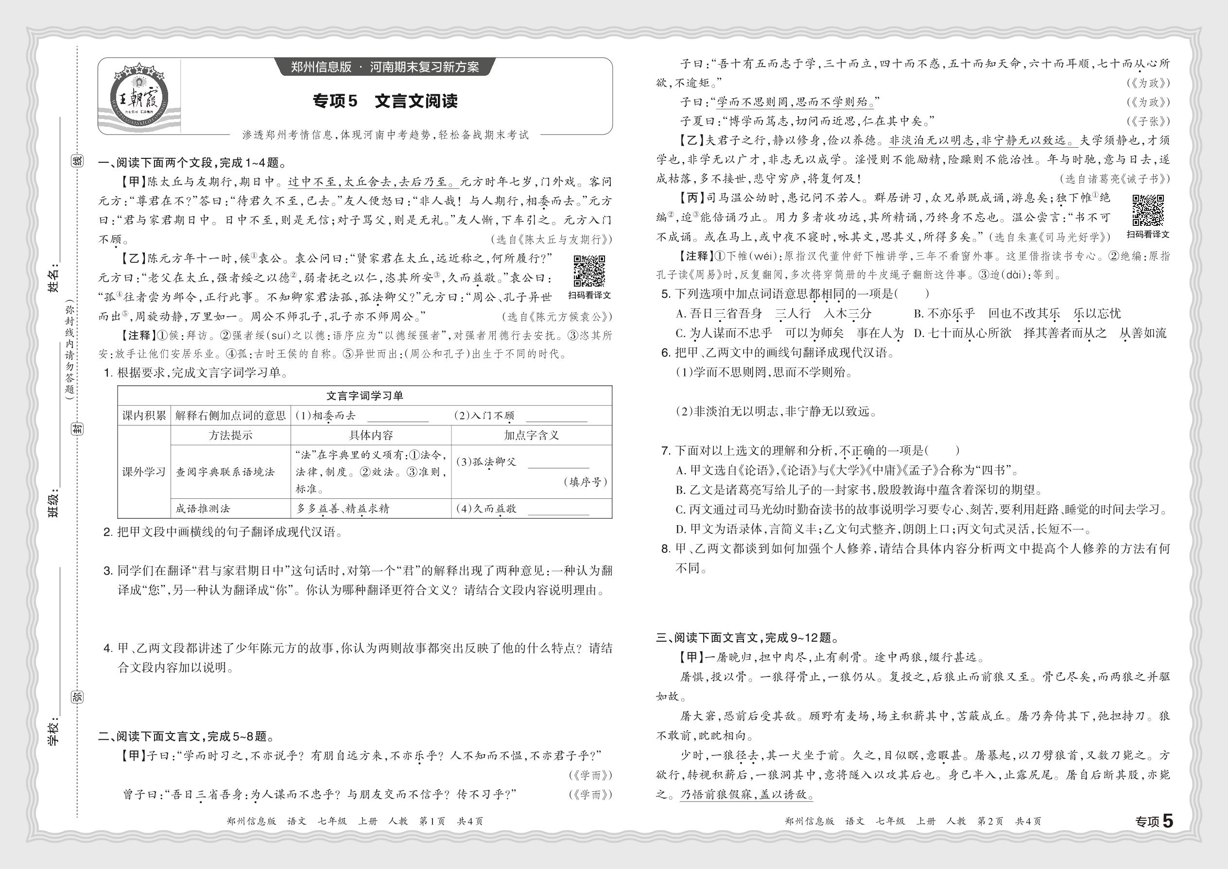 2023秋上册七年级语文人教版 期末专项卷·文言文阅读【5】