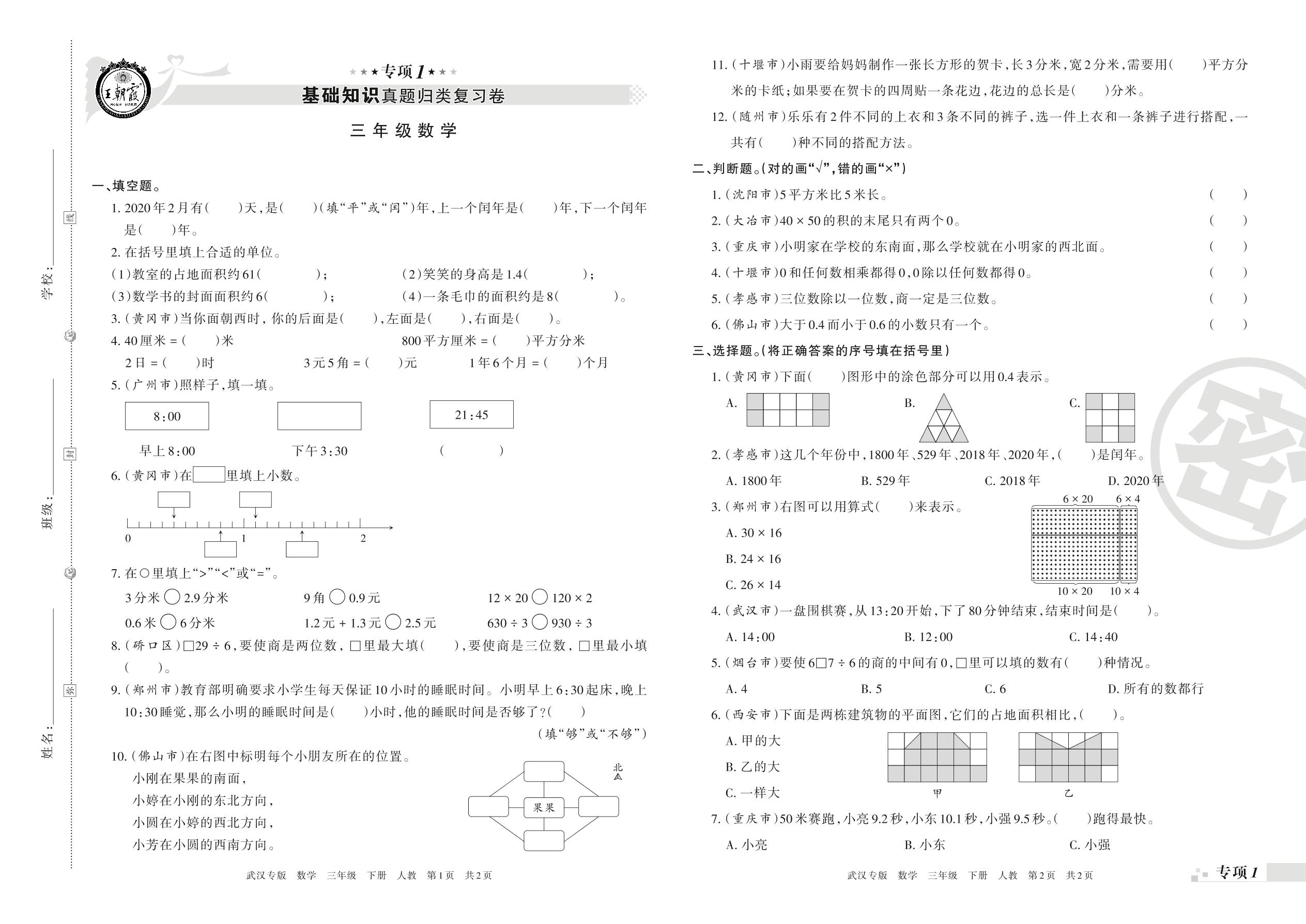 王朝霞期末专项卷——基础知识、基本运算真题归类复习三年级下册数学(人教版)_R21080490329【0】