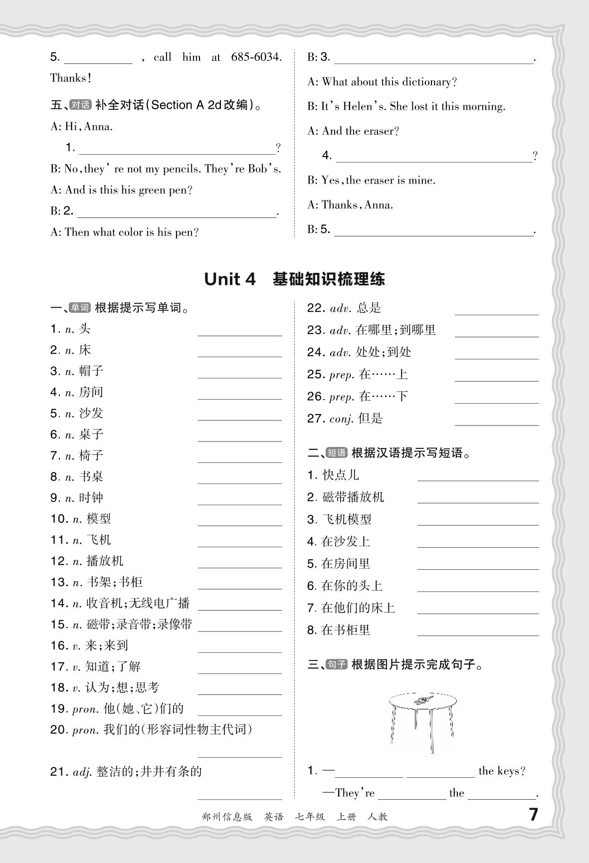2023秋上册七年级英语人教版 期末过课本·Unit 4 基础知识梳理练_R231128095242536