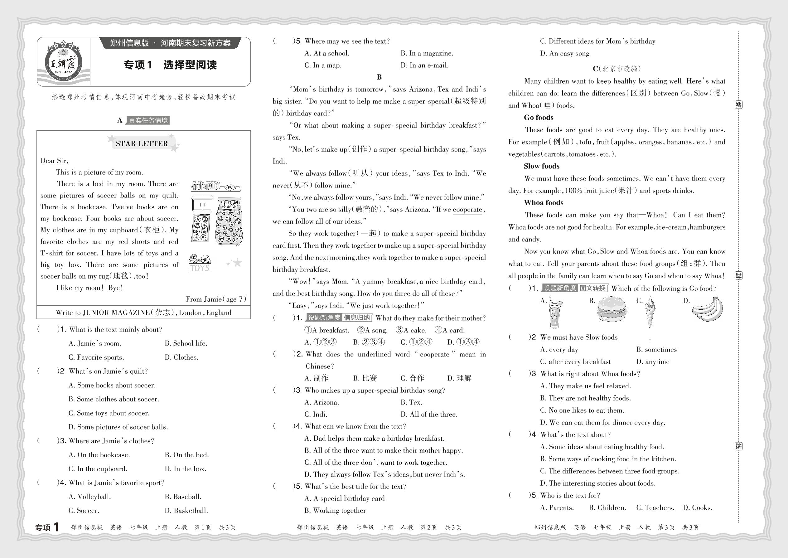 2023秋上册七年级英语人教版 期末专项卷·选择型阅读_R231128095245656【1】