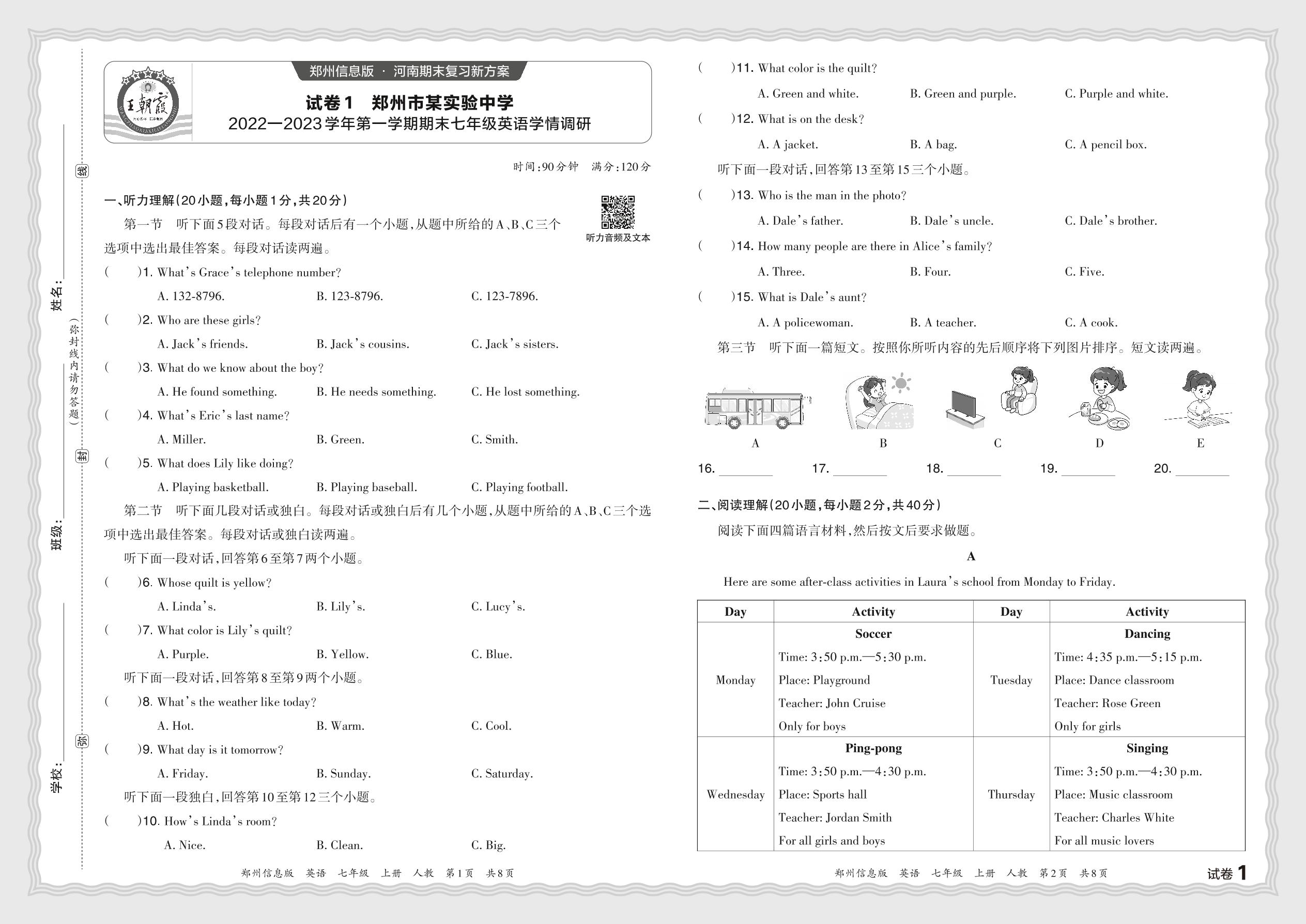 河南省郑州市某实验中学2022—2023学年第一学期期末七年级英语学情调研(人教版)_R231128094935332【1】