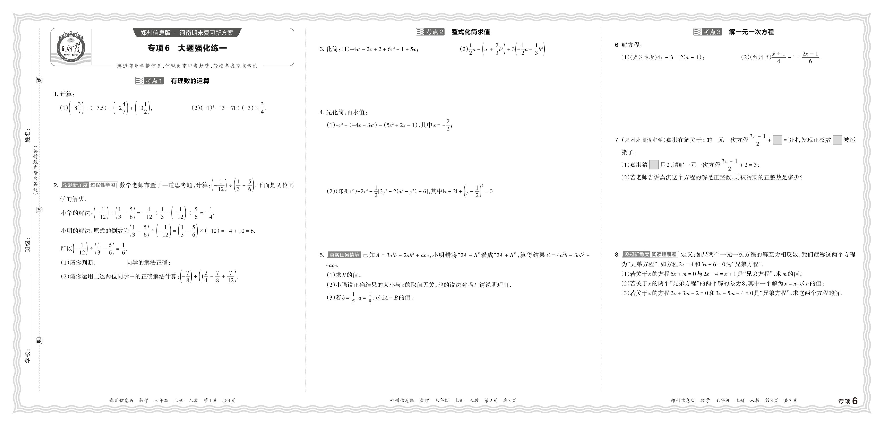 2023秋上册七年级数学人教版 期末专项卷·大题强化练一【6】