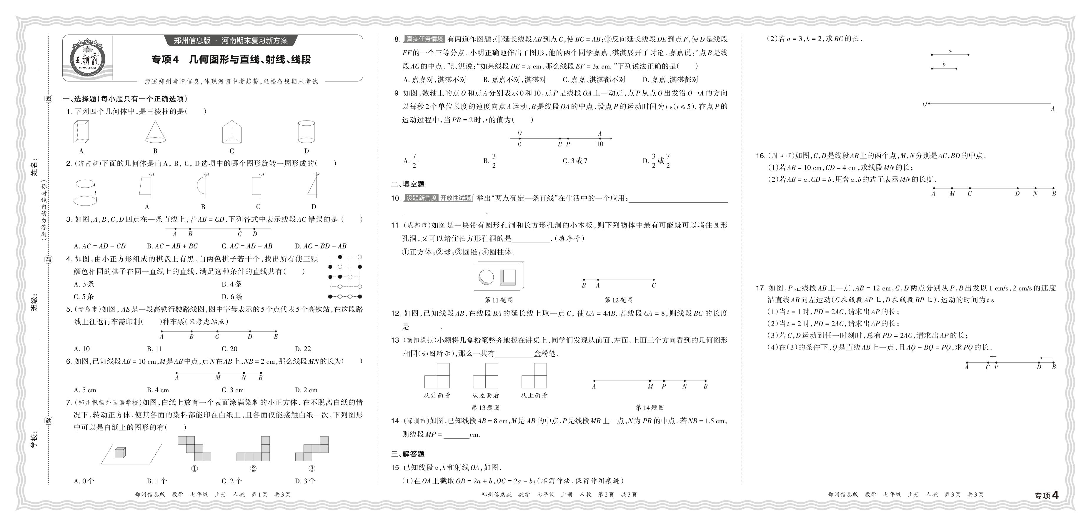 2023秋上册七年级数学人教版 期末专项卷·几何图形与直线、射线、线段【4】