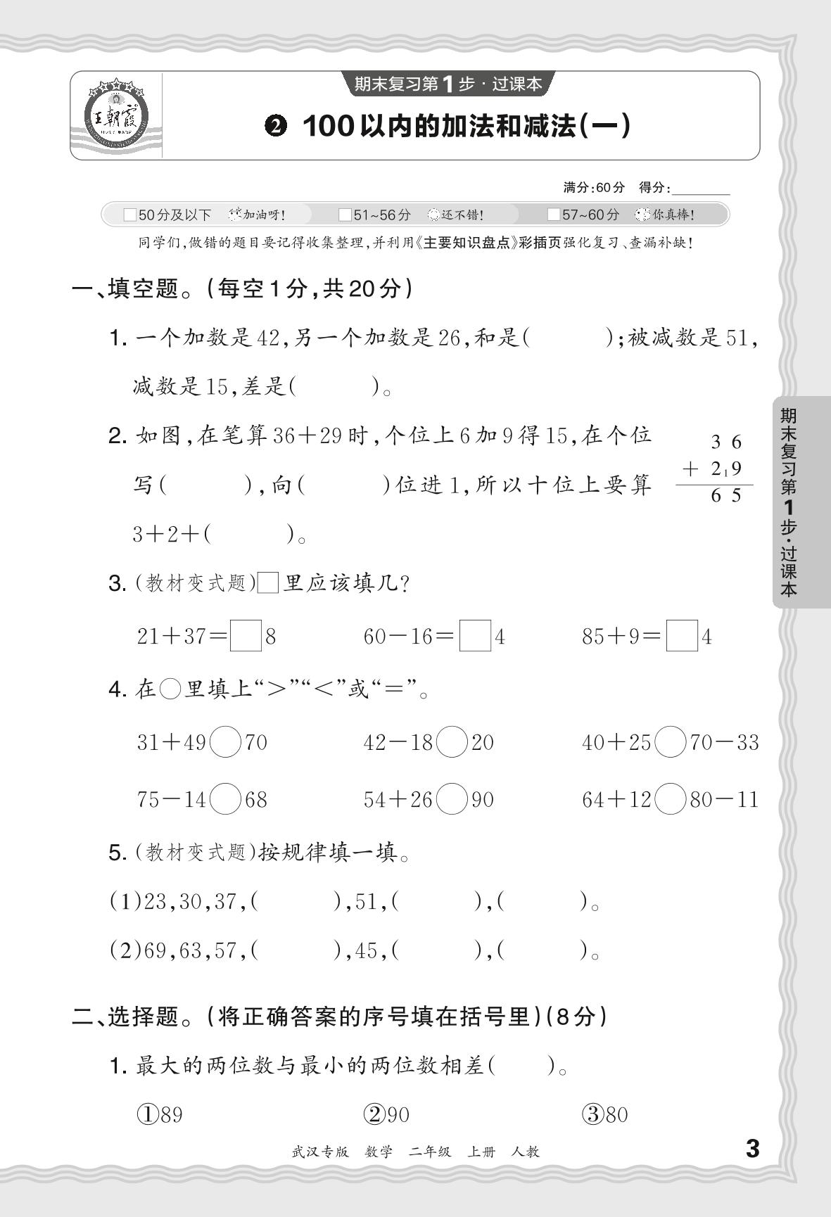 2023秋上册二年级数学人教版 期末过课本·100以内的加法和减法(一)【2】