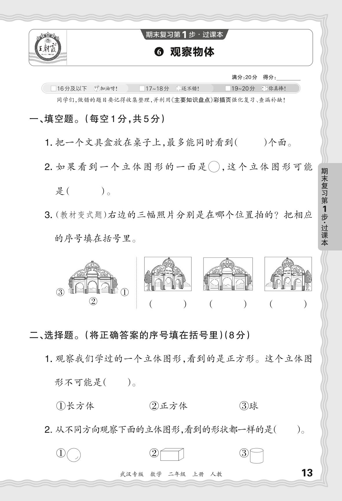 2023秋上册二年级数学人教版 期末过课本·观察物体【6】