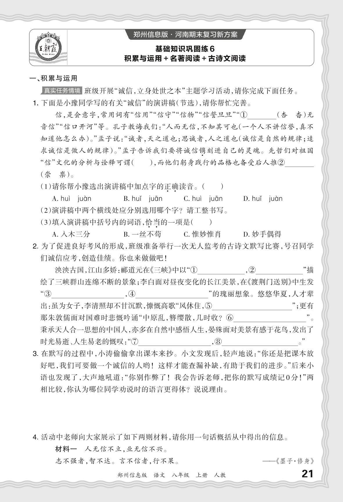 2023秋上册八年级语文人教版 期末过课本·基础知识巩固练 积累与运用+名著阅读+古诗文阅读【6】
