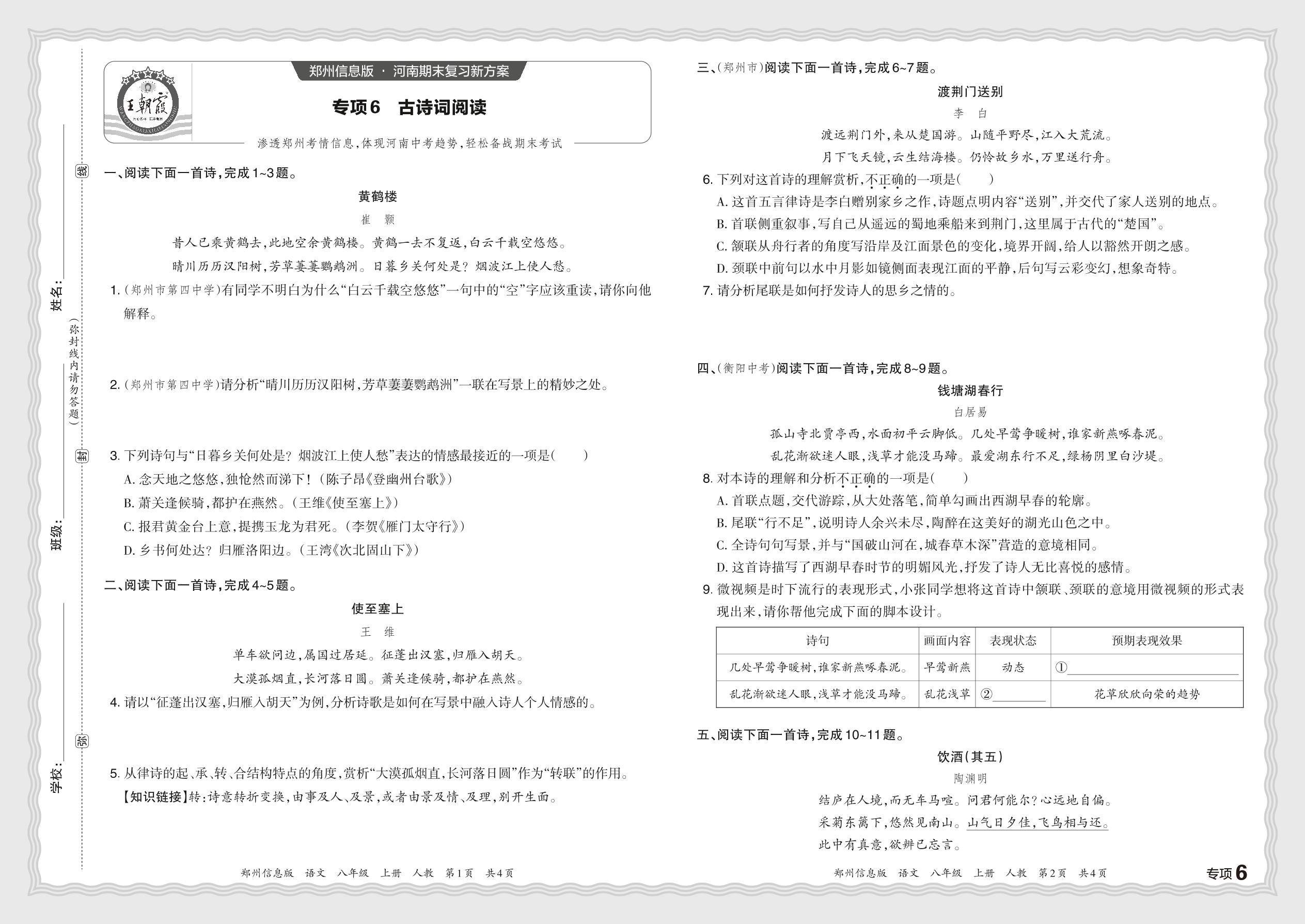 2023秋上册八年级语文人教版 期末专项卷·古诗词阅读_R231128100451009【6】