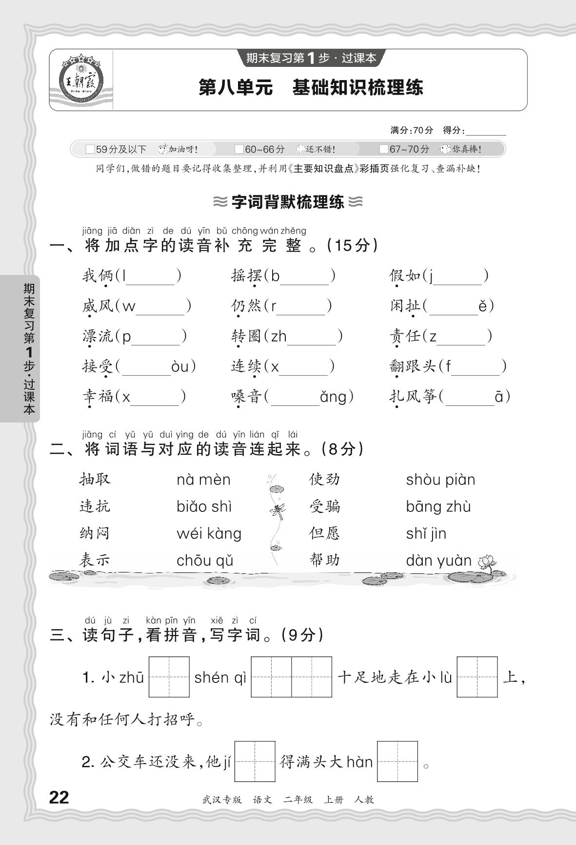 2023秋上册二年级语文人教版 期末过课本·第八单元 基础知识梳理练