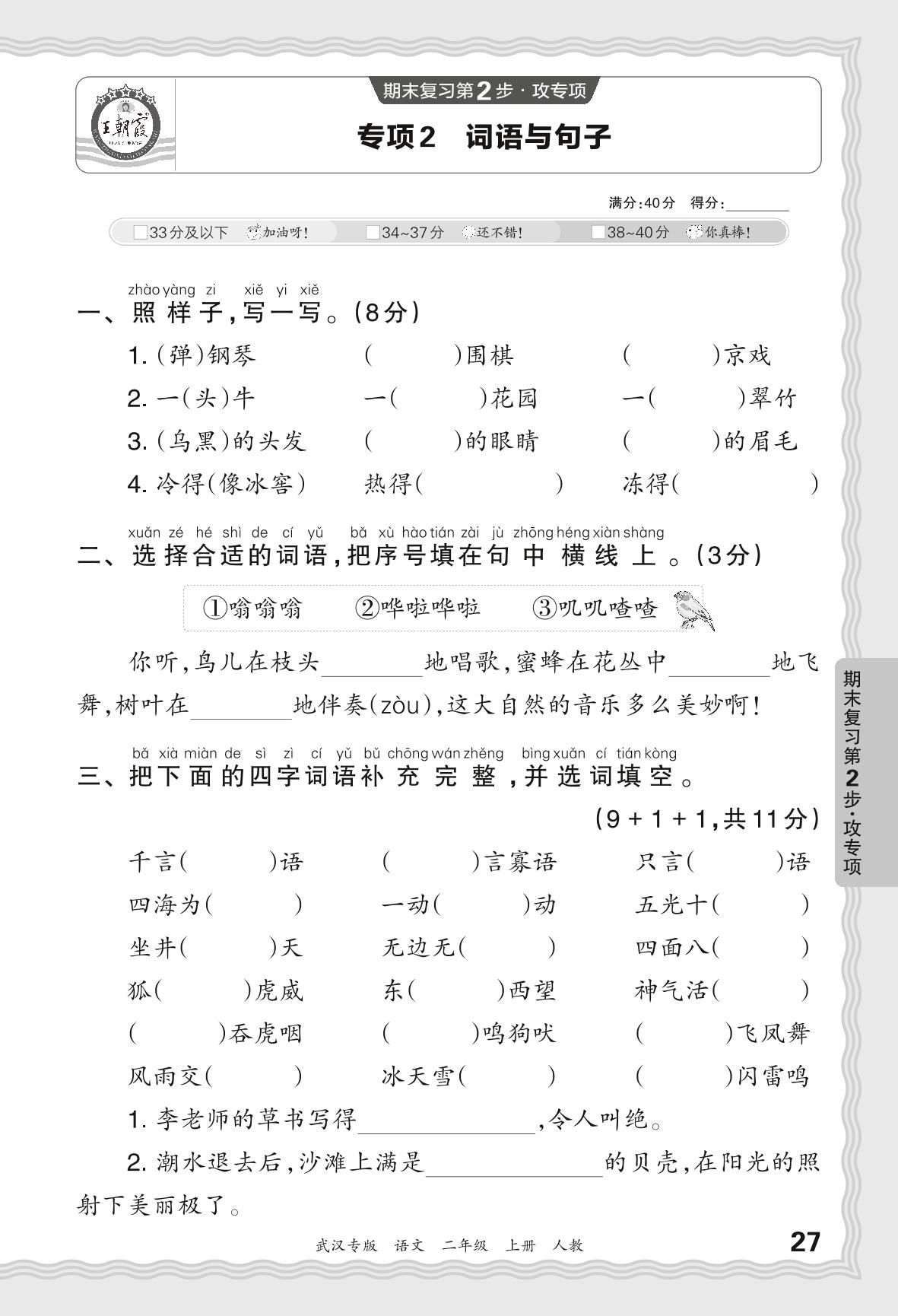 2023秋上册二年级语文人教版 期末专项·词语与句子【2】