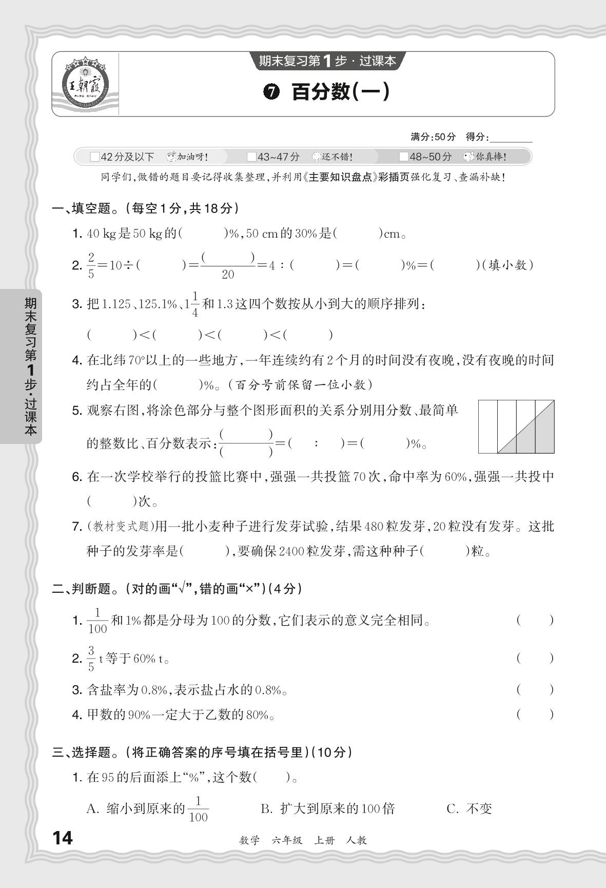 2023秋上册六年级数学人教版 期末过课本QMB版·百分数(一)【7】
