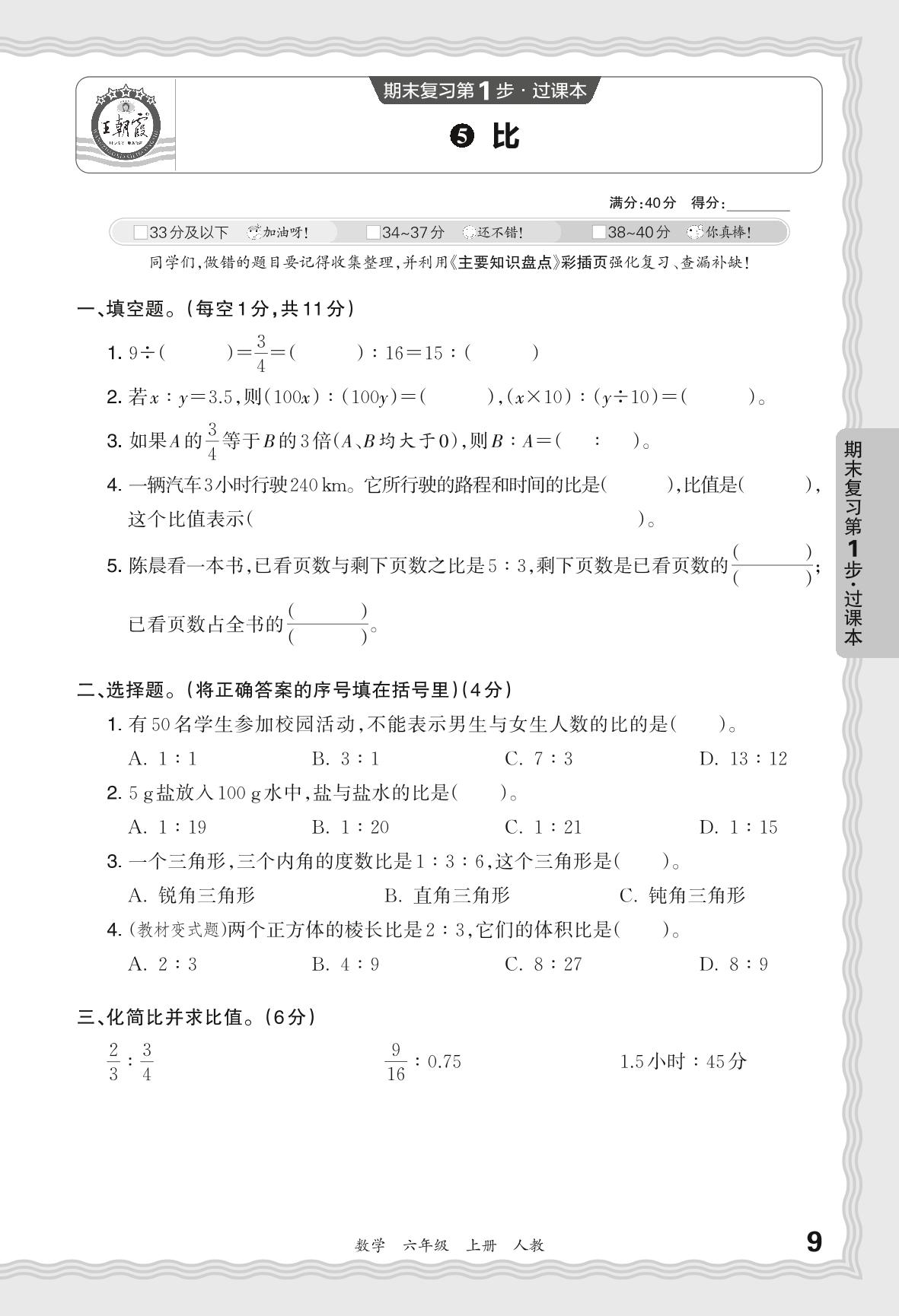 2023秋上册六年级数学人教版 期末过课本QMB版·比【5】